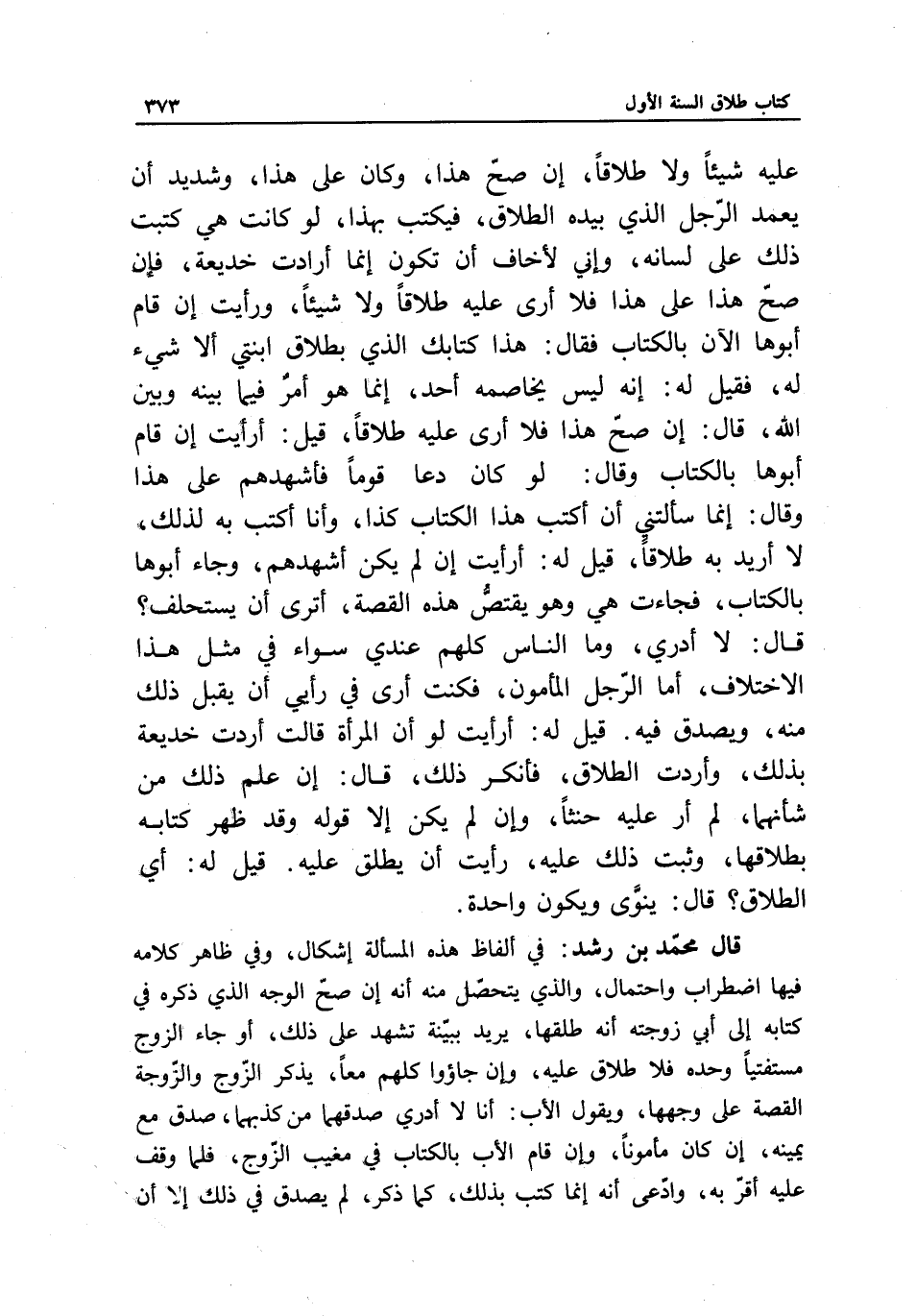 عليه شيئا ولا طلاقا، إن صح هذا، وكان على هذا، وشديد أن يعمد الرجل الذي بيده الطلاق، فيكتب بهذا، لو كانت هي كتبت ذلك على لسانه، وإني لأخاف أن تكون إنما أرادت خديعة، فإن صح هذا على هذا فلا أرى عليه طلاقا ولا شيئا، ورأيت إن قام أبوها الآن بالكتاب فقال: هذا كتابك الذي بطلاق ابنتي ألا شيء له، فقيل له: إنه ليس يخاصمه أحد، إنما هو أمر فيما بينه وبين الله، قال: إن صح هذا فلا أرى عليه طلاقا، قيل: أرأيت إن قام أبوها بالكتاب وقال: لو كان دعا قوما فأشهدهم على هذا وقال: إنما سألتني أن أكتب هذا الكتاب كذا، وأنا أكتب به لذلك، لا أريد به طلاقا، قيل له: أرأيت إن لم يكن أشهدهم، وجاء أبوها بالكتاب، فجاءت هي وهو يقتص هذه القصة، أترى أن يستحلف؟ قال: لا أدري، وما الناس كلهم عندي سواء في مثل هذا الاختلاف، أما الرجل المأمون، فكنت أرى في رأيي أن يقبل ذلك منه، ويصدق فيه. قيل له: أرأيت لو أن المرأة قالت أردت خديعة بذلك، وأردت الطلاق، فأنكر ذلك، قال: إن علم ذلك من شأنهما، لم أر عليه حنثا، وإن لم يكن إلا قوله وقد ظهر كتابه بطلاقها، وثبت ذلك عليه، رأيت أن يطلق عليه. قيل له: أي الطلاق؟ قال: ينوى ويكون واحدة.