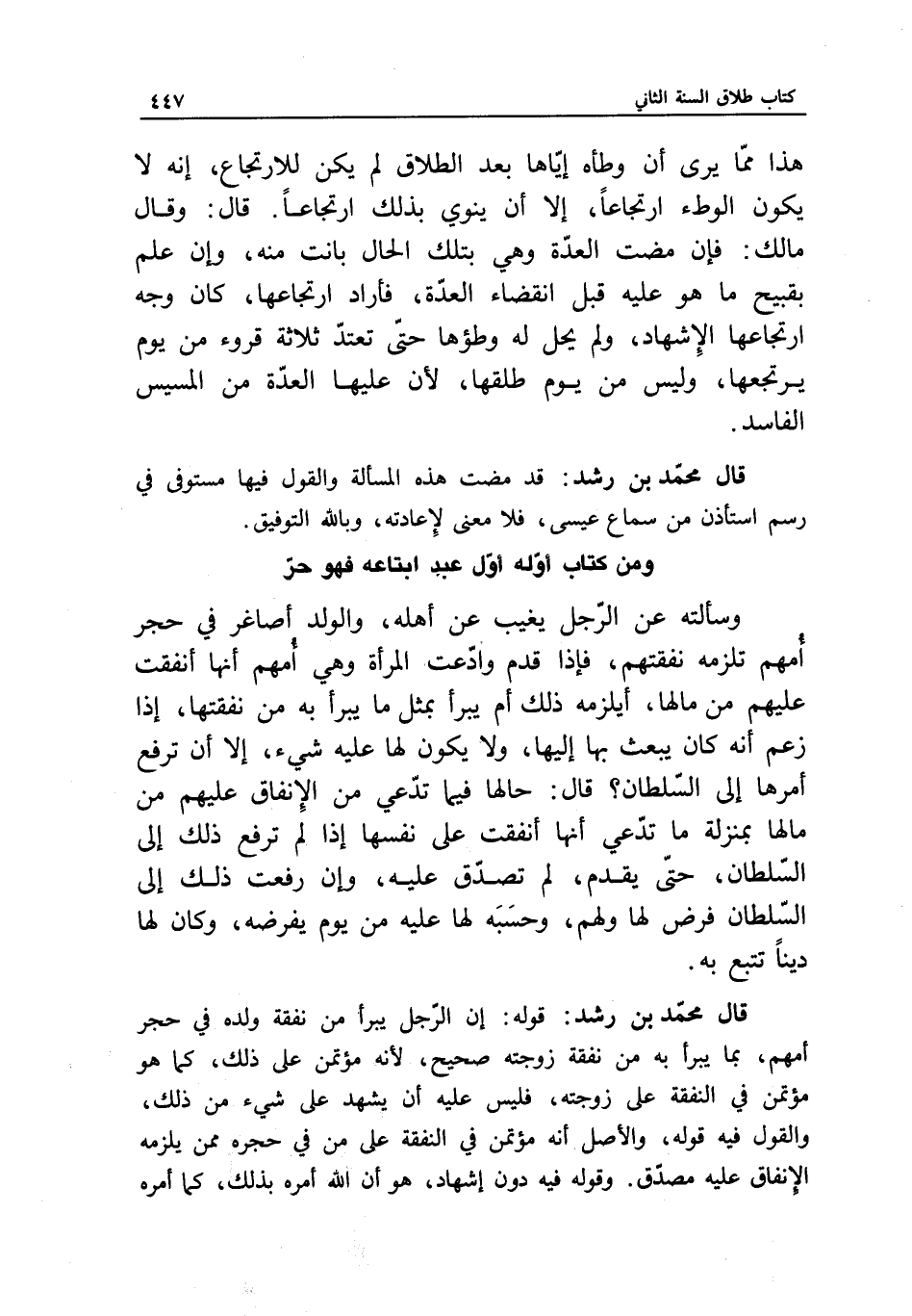 قال محمد بن رشد: قد مضت هذه المسألة والقول فيها مستوفى في رسم استأذن من سماع عيسى، فلا معنى لإعادته، وبالله التوفيق.