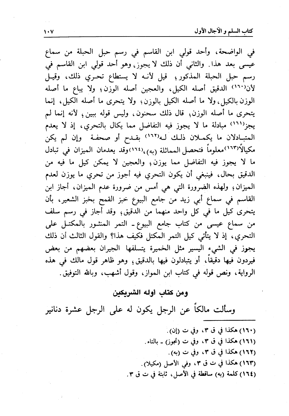 ومن كتاب أوله الشريكين وسألت مالكا: عن الرجل يكون له على الرجل عشرة دنانير