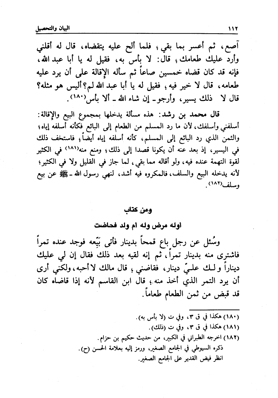 قال محمد بن رشد: هذه مسألة يدخلها بمجموع البيع والإقالة، أسلفني وأسلفك؛ لأن ما رد المسلم من الطعام إلى البائع فكأنه أسلفه إياه؛ والثمن الذي رد البائع إلى المسلم، كأنه أسلفه إياه أيضا؛ فاستخف ذلك في اليسير، إذ بعد عنه أن يكونا قصدا إلى ذلك؛ ومنع منه في الكثير لقوة التهمة عنده فيه، ولو أقاله مما بقي، لما جاز في القليل ولا في الكثير؛ لأنه يدخله البيع والسلف، فالمكروه فيه أشد، لنهي رسول الله - صَلَّى اللَّهُ عَلَيْهِ وَسَلَّمَ - عن بيع وسلف.