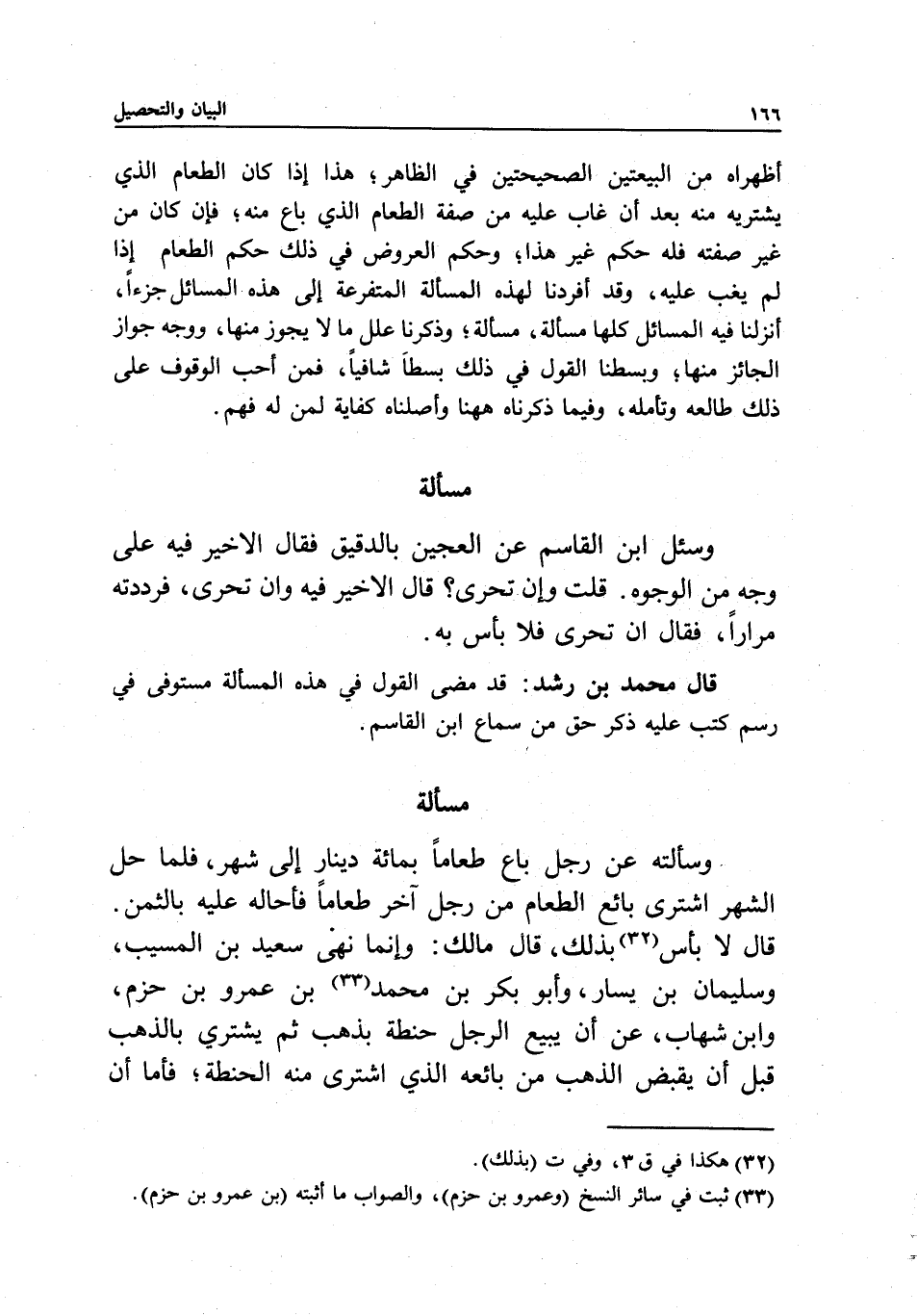 أظهراه من البيعتين الصحيحتين في الظاهر؛ هذا إذا كان الطعام الذي يشتريه منه بعد أن غاب عليه من صفة الطعام الذي باع منه؛ فإن كان من غير صفته فله حكم غير هذا؛ وحكم العروض في ذلك حكم الطعام إذا لم يغب عليه، وقد أفردنا لهذه المسألة المتفرعة إلى هذه المسائل جزءا، أنزلنا فيه المسائل كلها مسألة مسألة؛ وذكرنا علل ما لا يجوز منها، ووجه جواز الجائز منها؛ وبسطنا القول في ذلك بسطا شافيا، فمن أحب الوقوف على ذلك طالعه وتأمله، وفيما ذكرناه ههنا وأصلناه كفاية لمن له فهم.