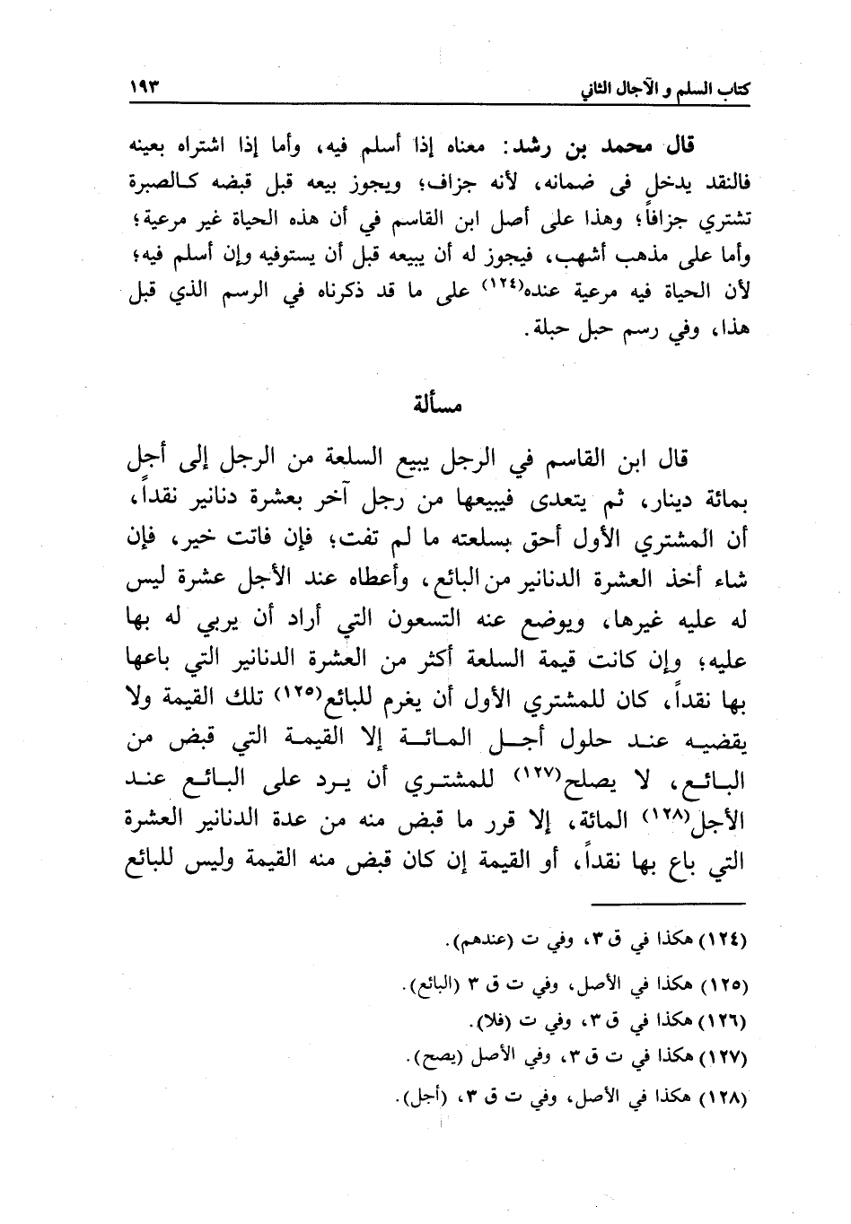 [مسألة: الرجل يبيع السلعة من الرجل إلى أجل بمائة دينار]