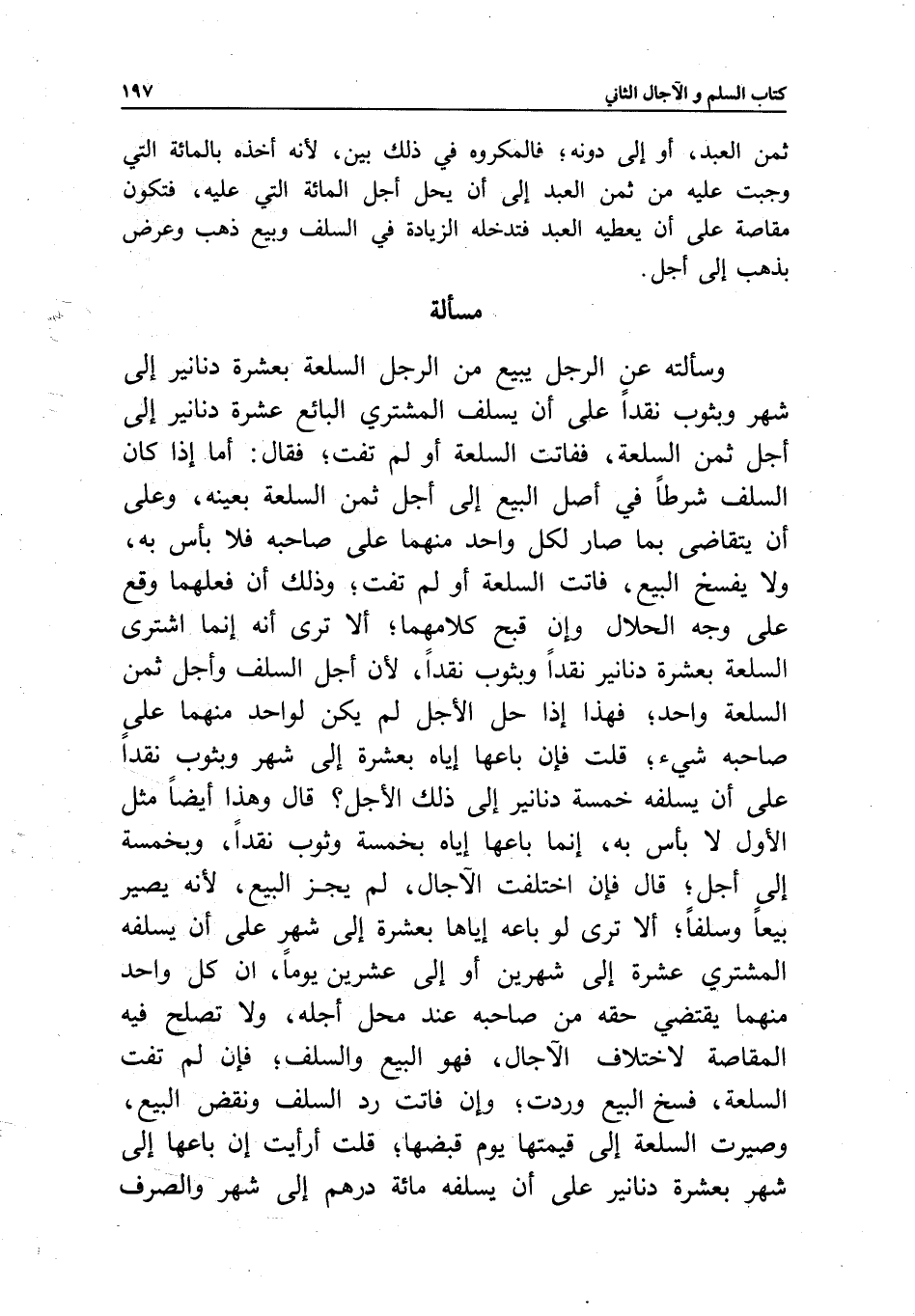 [مسألة: يبيع من الرجل السلعة بعشرة دنانير إلى شهر وبثوب نقدا]