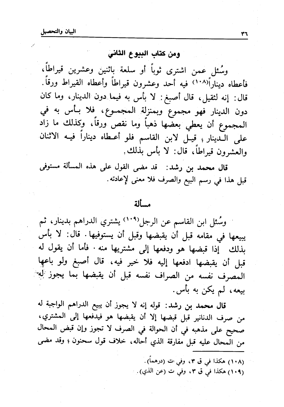 قال محمد بن رشد: قد مضى القول على هذه المسألة مستوفى قبل هذا في رسم البيع والصرف فلا معنى لإعادته.