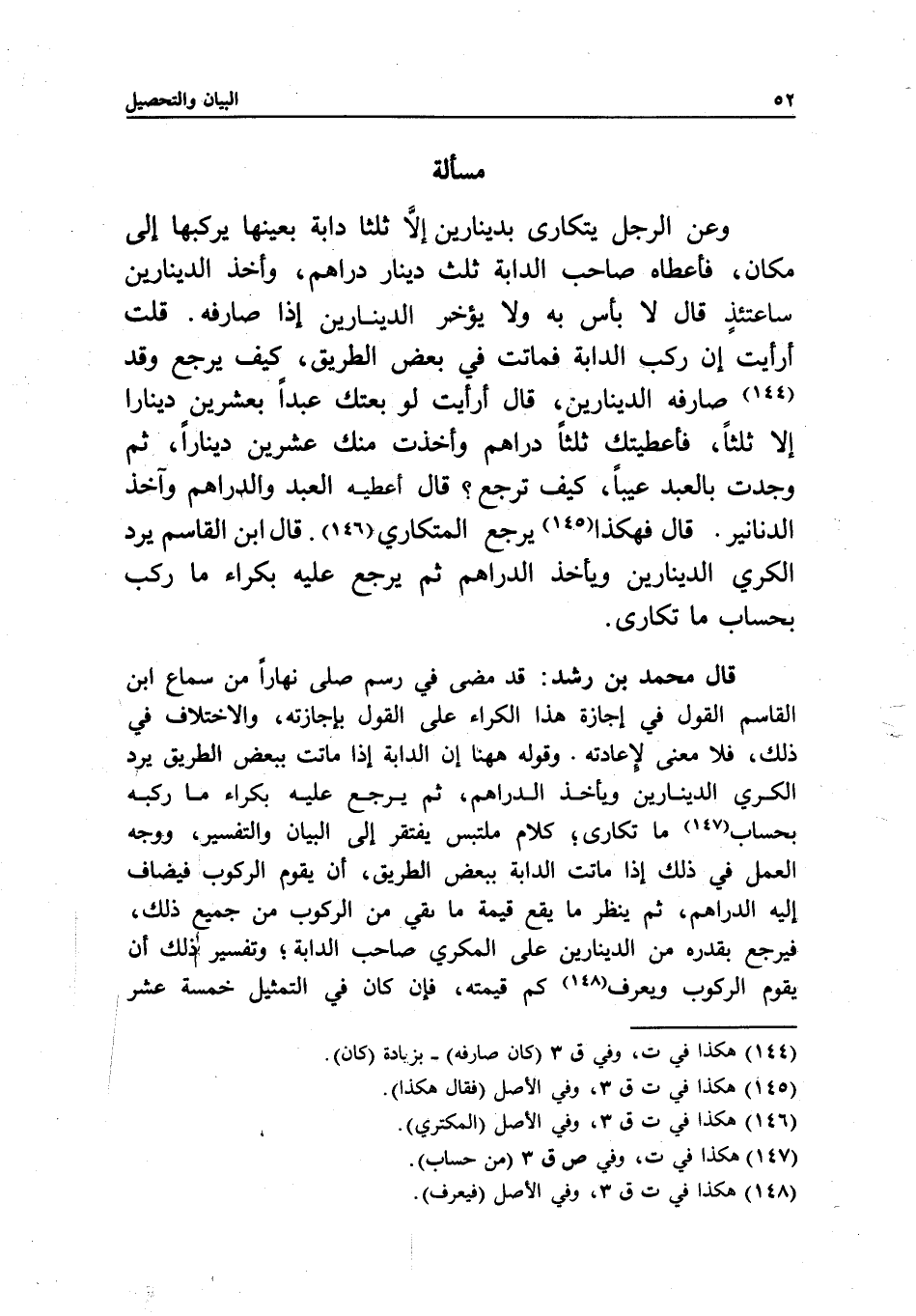 قال محمد بن رشد: قد مضى في رسم صلى نهارا من سماع ابن القاسم القول في إجازة هذا الكراء على القول بإجازته، والاختلاف في ذلك، فلا معنى لإعادته. وقوله هاهنا: إن الدابة إذا ماتت ببعض الطريق يرد الكري الدينارين ويأخذ الدراهم، ثم يرجع عليه بكراء ما ركبه بحساب ما تكارى؛ كلام ملتبس يفتقر إلى البيان والتفسير، ووجه العمل في ذلك إذا ماتت الدابة ببعض الطريق، أن يقوم الركوب فيضاف إليه الدراهم، ثم ينظر ما يقع قيمة ما بقي من الركوب من جميع ذلك، فيرجع بقدره من الدينارين على المكري صاحب الدابة؛ وتفسير ذلك: أن يقوم الركوب ويعرف كم قيمته، فإن كان في التمثيل خمسة عشر