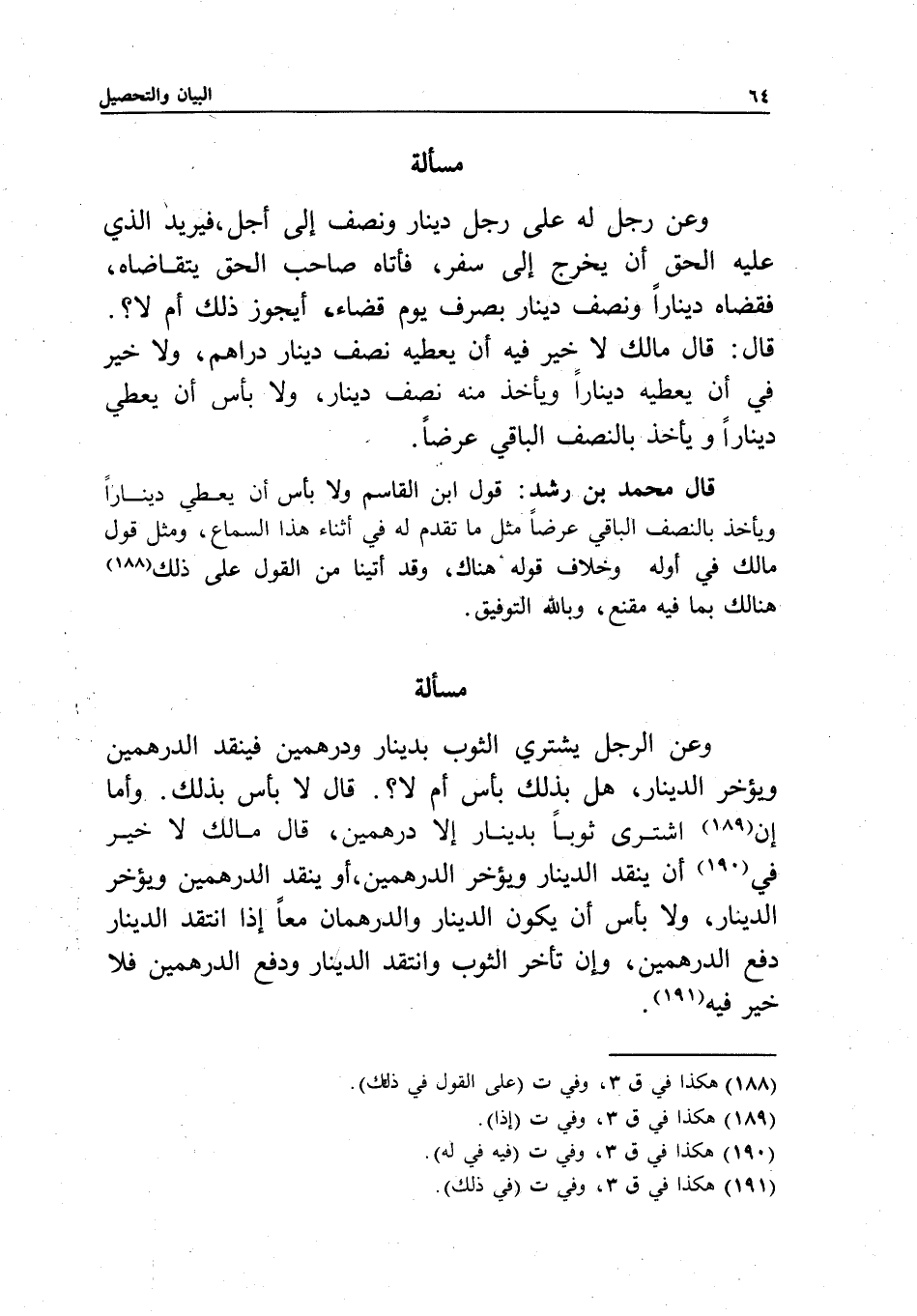 قال: لا بأس بذلك. وأما إن اشترى ثوبا بدينار إلا درهمين، قال مالك: لا خير في أن ينقد الدينار ويؤخر الدرهمين، أو ينقد الدرهمين ويؤخر الدينار، ولا بأس أن يكون الدينار والدرهمان معا إذا انتقد الدينار دفع الدرهمين، وإن تأخر الثوب وانتقد الدينار ودفع الدرهمين فلا خير فيه.