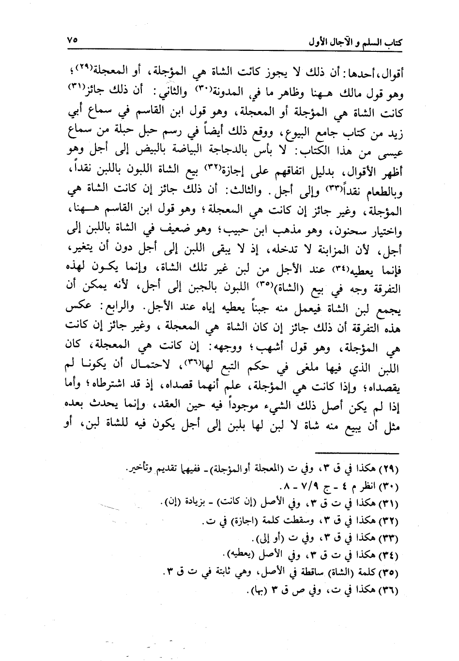 والثاني: أن ذلك جائز، كانت الشاة هي المؤجلة أو المعجلة، وهو قول ابن القاسم في سماع أبي زيد من كتاب جامع البيوع، ووقع ذلك أيضا في رسم حبل حبلة من سماع عيسى من هذا الكتاب: لا بأس بالدجاجة البياضة بالبيض إلى أجل، وهو أظهر الأقوال، بدليل اتفاقهم على إجازة بيع الشاة اللبون باللبن نقدا، وبالطعام نقدا وإلى أجل.