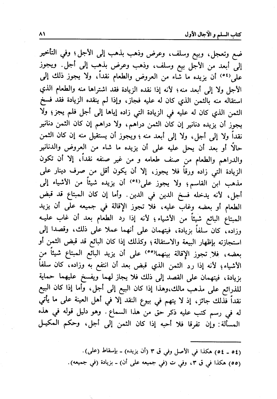 ضع وتعجل، وبيع وسلف، وعرض وذهب بذهب إلى الأجل، وفي التأخير إلى أبعد من الأجل بيع وسلف، وذهب وعرض بذهب إلى أجل. ويجوز على أن يزيده ما شاء من العروض والطعام نقدا، ولا يجوز ذلك إلى الأجل ولا إلى أبعد منه؛ لأنه إذا نقده الزيادة فقد اشتراها منه والطعام الذي استقاله منه بالثمن الذي كان له عليه فجاز، وإذا لم ينقده الزيادة فقد فسخ الثمن الذي كان له عليه في الزيادة التي زاده إياها إلى أجل فلم يجز؛ ولا يجوز أن يزيده دنانير إن كان الثمن دراهم، ولا دراهم إن كان الثمن دنانير نقدا ولا إلى أجل، ولا إلى أبعد منه؛ ويجوز أن يستقيل منه إن كان الثمن حالا أو بعد أن يحل عليه على أن يزيده ما شاء من العروض والدنانير والدراهم والطعام من صنف طعامه ومن غير صنفه نقدا، إلا أن تكون الزيادة التي زاده ورقا فلا يجوز، إلا أن يكون أقل من صرف دينار على مذهب ابن القاسم؛ ولا يجوز على أن يزيده شيئا من الأشياء إلى أجل؛ لأنه يدخله فسخ الدين في الدين.