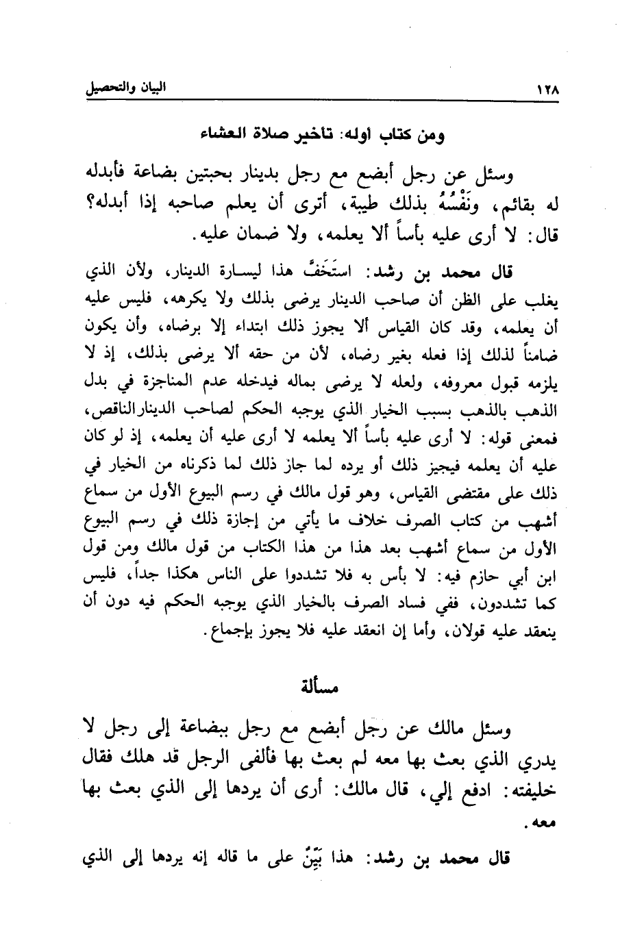 قال محمد بن رشد: هذا بين على ما قاله إنه يردها إلى الذي