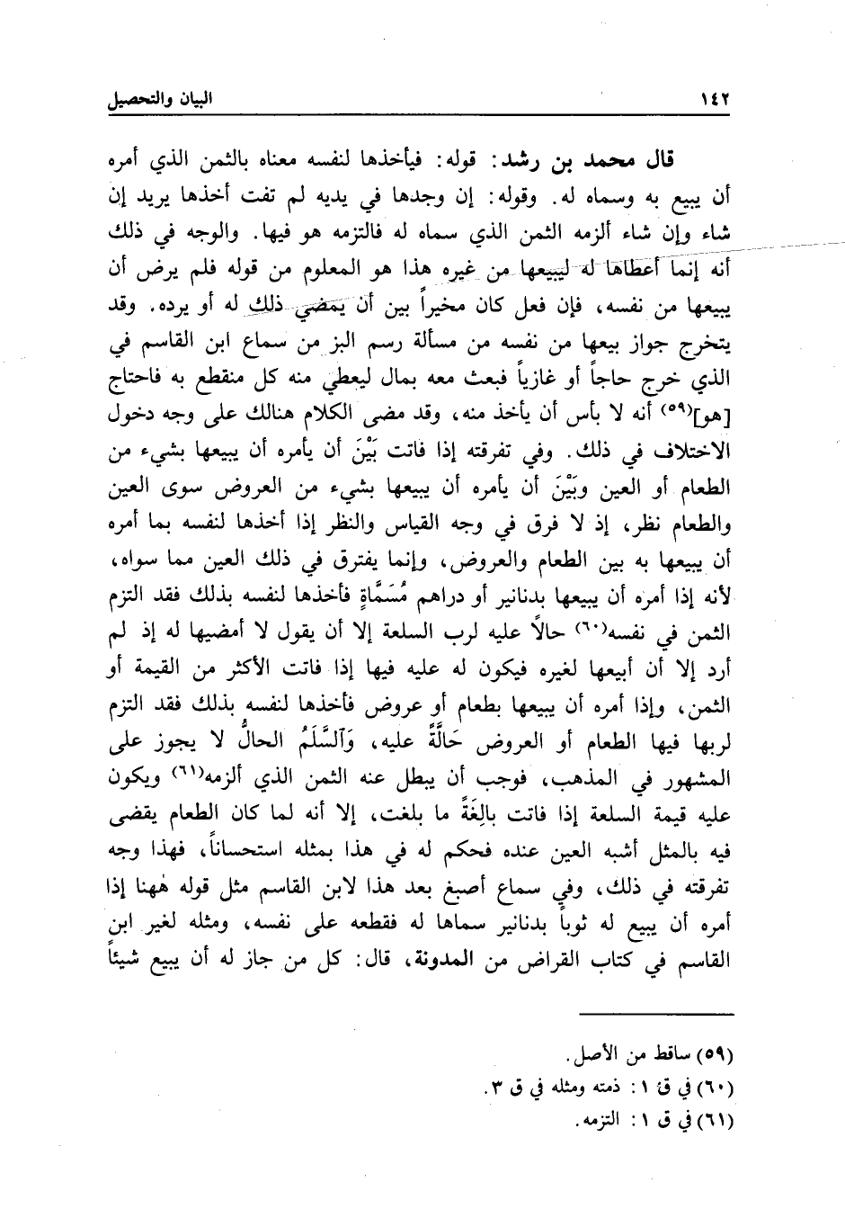 قال محمد بن رشد: قوله: فيأخذها لنفسه معناه بالثمن الذي أمره أن يبيع به وسماه له. وقوله: إن وجدها في يديه لم تفت أخذها يريد إن شاء وإن شاء ألزمه الثمن الذي سماه له فالتزمه هو فيها. والوجه في ذلك أنه إنما أعطاها له ليبيعها من غيره هذا هو المعلوم من قوله فلم يرض أن يبيعها من نفسه، فإن فعل كان مخيرا بين أن يمضي ذلك له أو يرده. وقد يتخرج جواز بيعها من نفسه من مسألة رسم البز من سماع ابن القاسم في الذي خرج حاجا أو غازيا فبعث معه بمال ليعطي منه كل منقطع به فاحتاج هو، أنه لا بأس أن يأخذ منه، وقد مضى الكلام هنالك على وجه دخول الاختلاف في ذلك. وفي تفرقته إذا فاتت بين أن يأمره أن يبيعها بشيء من الطعام أو العين وبين أن يأمره أن يبيعها بشيء من العروض سوى العين والطعام نظر، إذ لا فرق في وجه القياس والنظر إذا أخذها لنفسه بما أمره أن يبيعها به بين الطعام والعروض، وإنما يفترق في ذلك العين مما سواه؛ لأنه إذا أمره أن يبيعها بدنانير أو دراهم مسماة فأخذها لنفسه بذلك فقد التزم الثمن في نفسه حالا عليه لرب السلعة إلا أن يقول لا أمضيها له إذ لم أرد إلا أن أبيعها لغيره فيكون له عليه فيها إذا فاتت الأكثر من القيمة أو الثمن، وإذا أمره أن يبيعها بطعام أو عروض فأخذها لنفسه بذلك فقد التزم لربها فيها الطعام أو العروض حالة عليه، والسلم الحال لا يجوز على المشهور في المذهب، فوجب أن يبطل عنه الثمن الذي ألزمه ويكون عليه قيمة السلعة إذا فاتت بالغة ما بلغت، إلا أنه لما كان الطعام يقضى فيه بالمثل أشبه العين عنده فحكم له في هذا بمثله استحسانا، فهذا وجه تفرقته في ذلك، وفي سماع أصبغ بعد هذا لابن القاسم مثل قوله ههنا إذا أمره أن يبيع له ثوبا بدنانير سماها له فقطعه على نفسه، ومثله لغير ابن القاسم في كتاب القراض من المدونة، قال: كل من جاز له أن يبيع شيئا