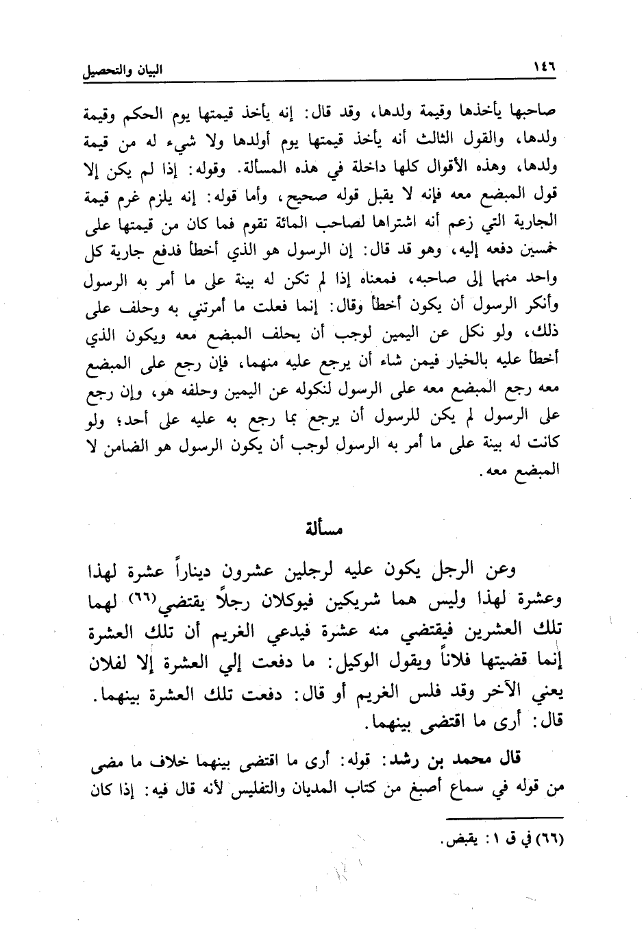 قال محمد بن رشد: قوله: أرى ما اقتضى بينهما خلاف ما مضى من قوله في سماع أصبغ من كتاب المديان والتفليس؛ لأنه قال فيه: إذا كان