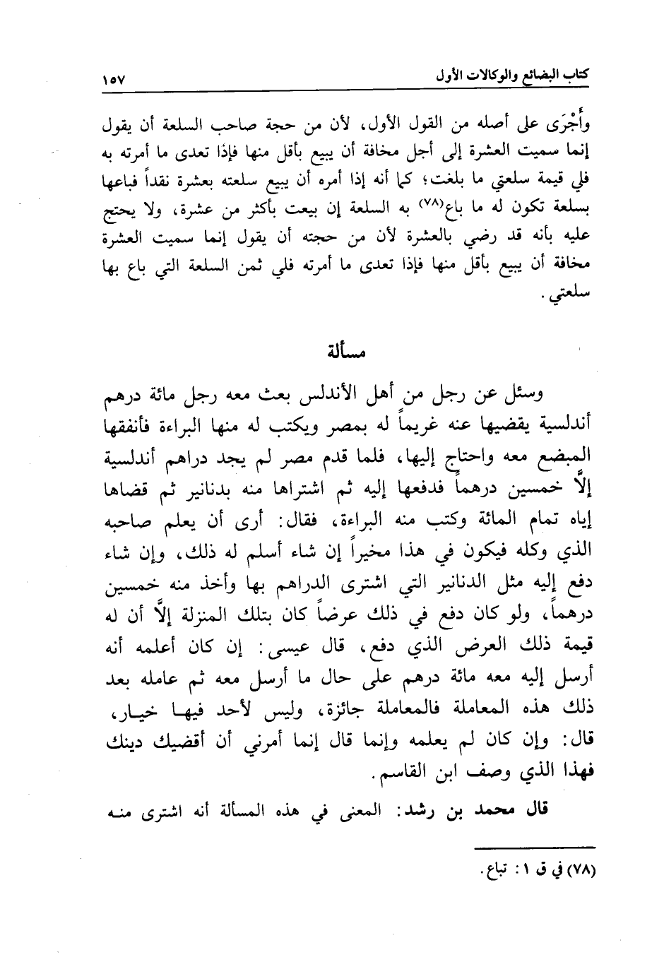 قال محمد بن رشد: المعنى في هذه المسألة أنه اشترى منه