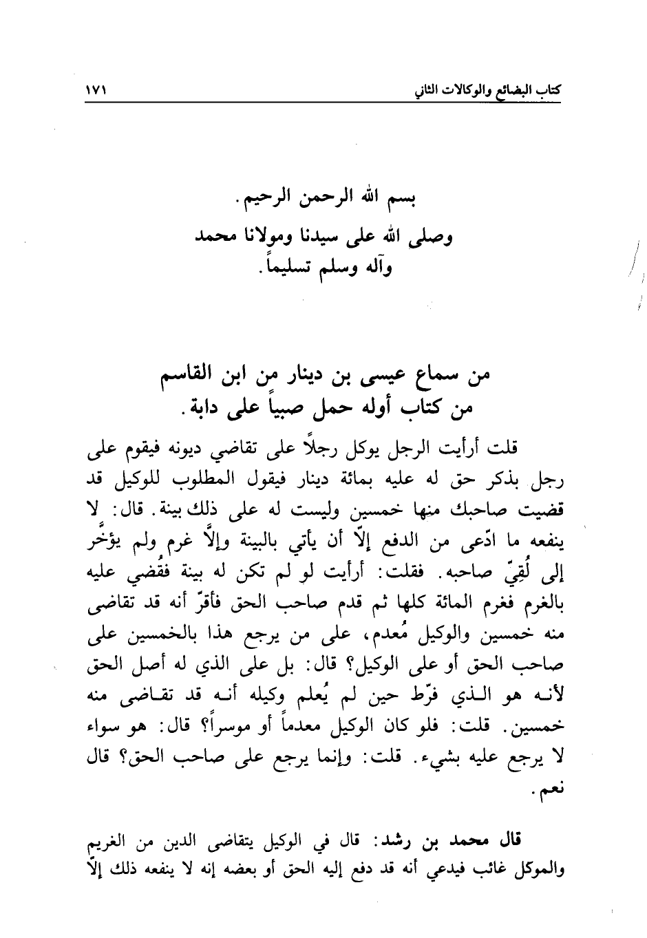 من سماع عيسى بن دينار من ابن القاسم