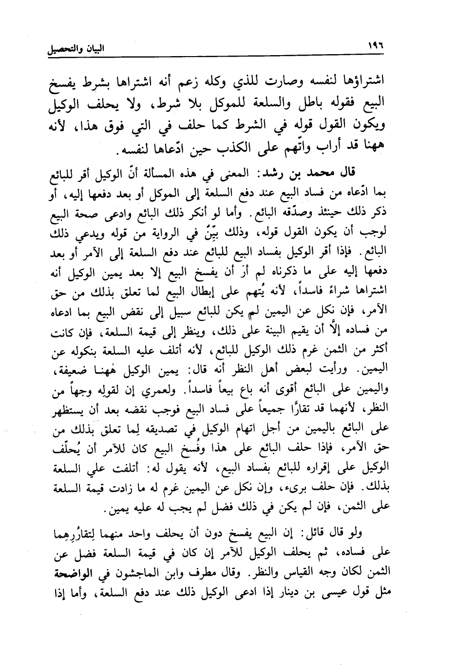 ولو قال قائل: إن البيع يفسخ دون أن يحلف واحد منهما لتقاررهما على فساده، ثم يحلف الوكيل للآمر إن كان في قيمة السلعة فضل عن الثمن لكان وجه القياس والنظر. وقال مطرف وابن الماجشون في الواضحة مثل قول عيسى بن دينار إذا ادعى الوكيل ذلك عند دفع السلعة، وأما إذا