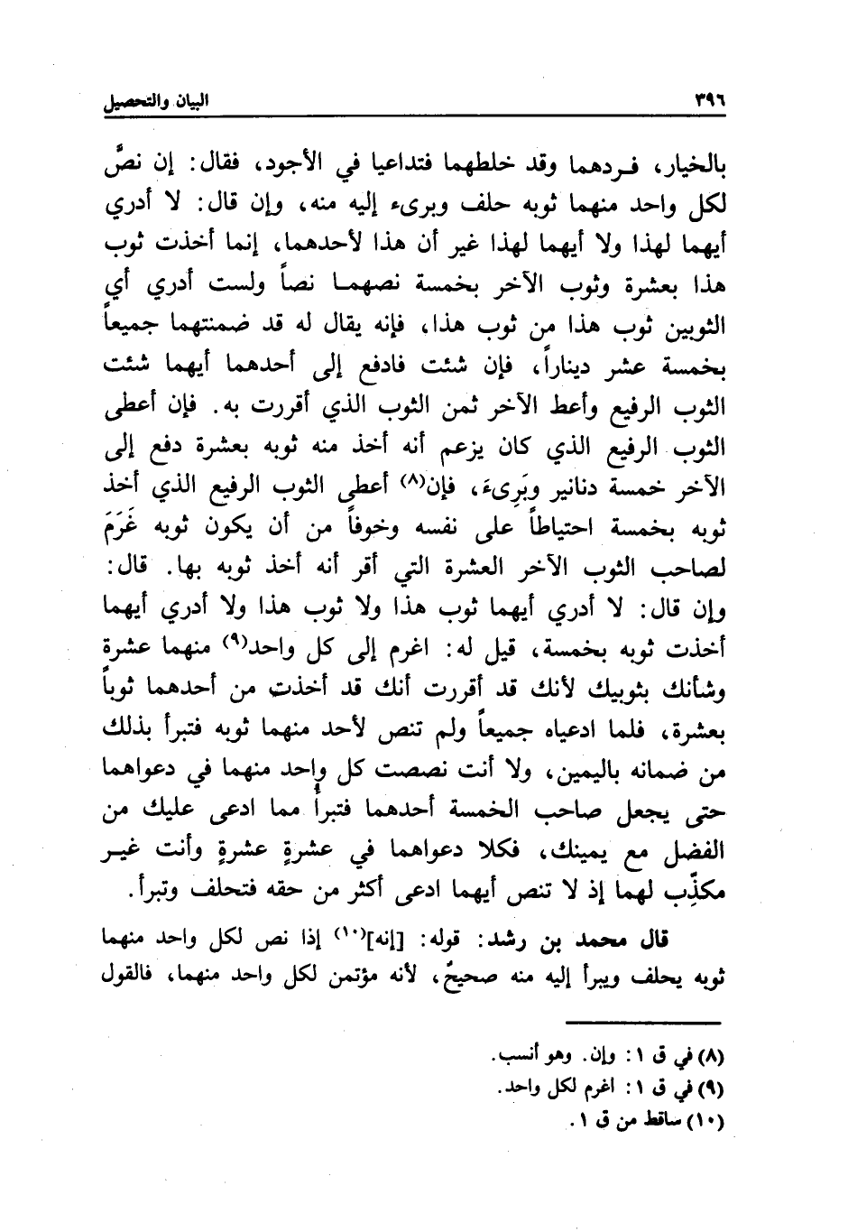 قال محمد بن رشد: قوله: إنه إذا نص لكل واحد منهما ثوبه، يحلف ويبرأ إليه منه صحيح؛ لأنه مؤتمن لكل واحد منهما، فالقول