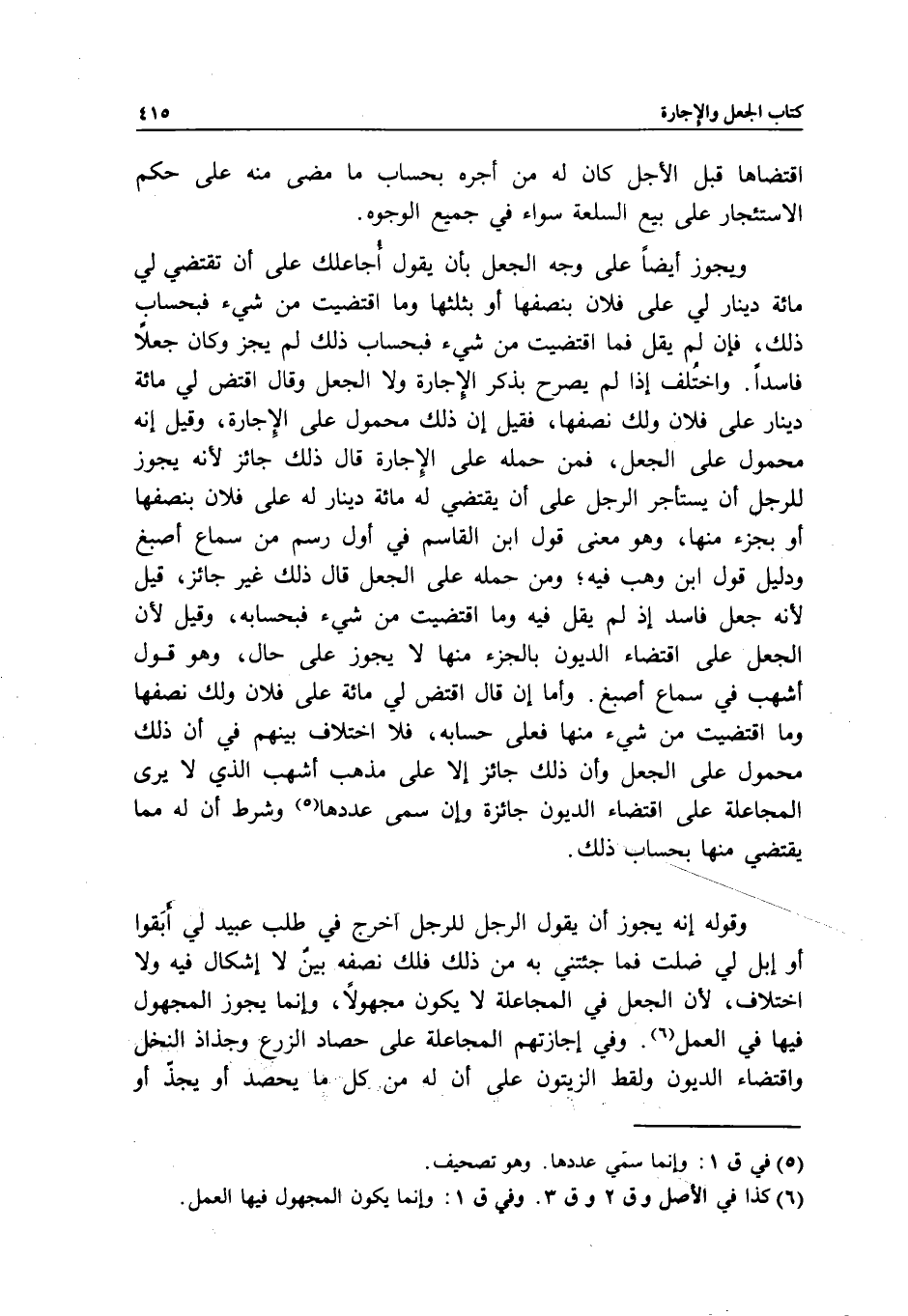 وقوله: إنه يجوز أن يقول الرجل للرجل: اخرج في طلب عبيد لي أبقوا، أو إبل لي ضلت، فما جئتني به من ذلك فلك نصفه بين لا إشكال فيه، ولا اختلاف؛ لأن الجعل في المجاعلة لا يكون مجهولا، وإنما يجوز المجهول فيها في العمل، وفي إجازتهم المجاعلة على حصاد الزرع وجذاذ النخل واقتضاء الديون، ولقط الزيتون على أن له من كل ما يحصد، أو يجذ، أو