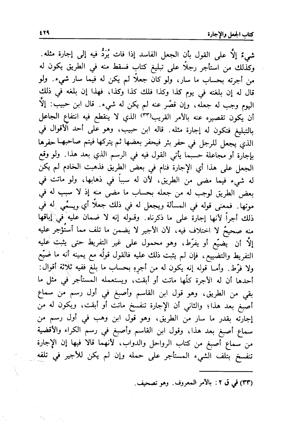 شيء إلا على القول بأن الجعل الفاسد، إذا فات يرد فيه إلى إجارة مثله. وكذلك من استأجر رجلا على تبليغ كتاب، فسقط منه في الطريق يكون له من أجرته بحساب ما سار، ولو كان جعلا لم يكن له فيما سار شيء، ولو قال له: إن بلغته في يوم كذا وكذا، فلك كذا وكذا، فهذا إن بلغه في ذلك اليوم وجب له جعله، وإن قصر عنه لم يكن له شيء.