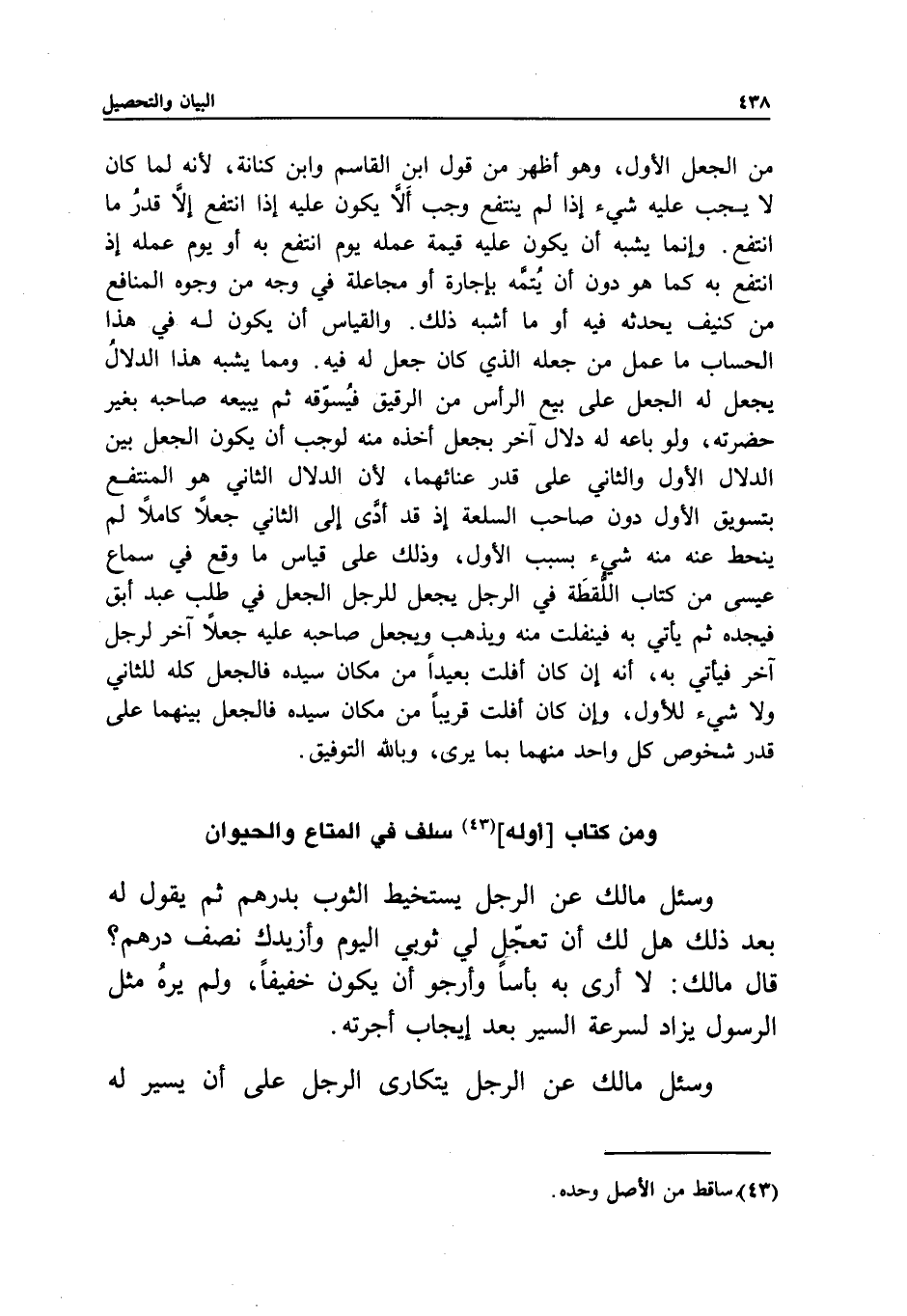 ومن كتاب أوله سلف في المتاع والحيوان وسئل مالك عن الرجل يستخيط الثوب بدرهم، ثم يقول له بعد ذلك: هل لك أن تعجل لي ثوبي اليوم وأزيدك نصف درهم؟ قال مالك: لا أرى به بأسا، وأرجو أن يكون خفيفا، ولم يره مثل الرسول يزاد لسرعة السير بعد إيجاب أجرته.