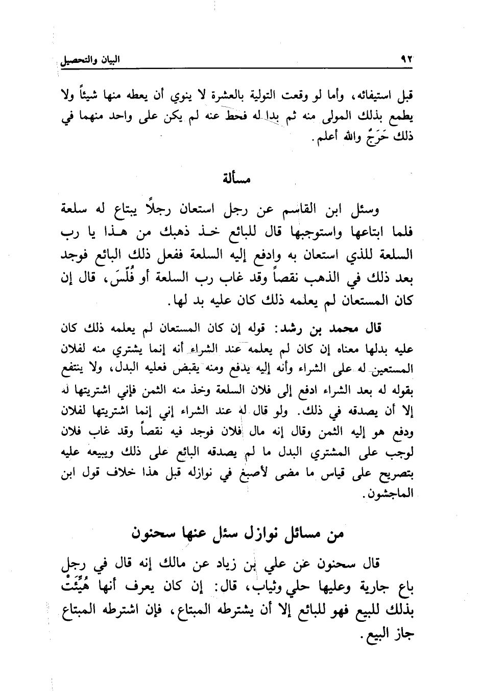 من مسائل نوازل سئل عنها سحنون قال سحنون عن علي بن زياد عن مالك إنه قال في رجل باع جارية وعليها حلي وثياب، قال: إن كان يعرف أنها هيئت بذلك للبيع فهو للبائع إلا أن يشترطه المبتاع، فإن اشترطه المبتاع جاز البيع.