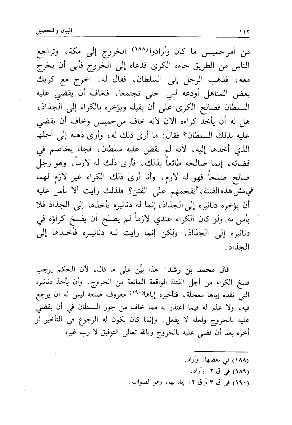 قال محمد بن رشد: هذا بين على ما قال؛ لأن الحكم يوجب فسخ الكراء من أجل الفتنة الواقعة المانعة من الخروج، وأن يأخذ دنانيره التي نقده إياها معجلة، فتأخيره إياها معروف صنعه ليس له أن يرجع فيه، ولا عذر له فيما اعتذر به مما خاف من جور السلطان في أن يقضي عليه بالخروج، ولعله لا يفعل.