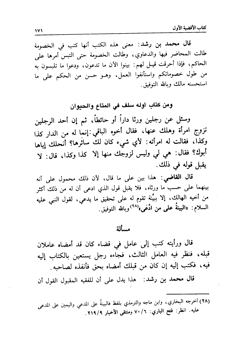 قال محمد بن رشد: هذا يدل على أن للفقيه المقبول القول أن