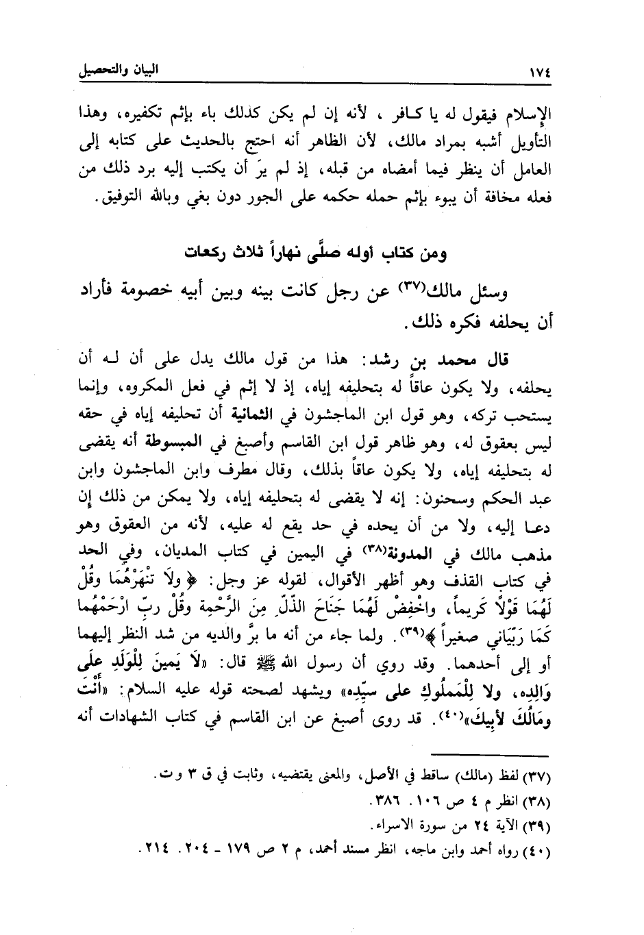 الإسلام فيقول له يا كافر؛ لأنه إن لم يكن كذلك باء بإثم تكفيره، وهذا التأويل أشبه بمراد مالك؛ لأن الظاهر أنه احتج بالحديث على كتابه إلى العامل أن ينظر فيما أمضاه من قبله، إذ لم ير أن يكتب إليه برد ذلك من فعله مخافة أن يبوء بإثم حمله حكمه على الجور دون بغي وبالله التوفيق.