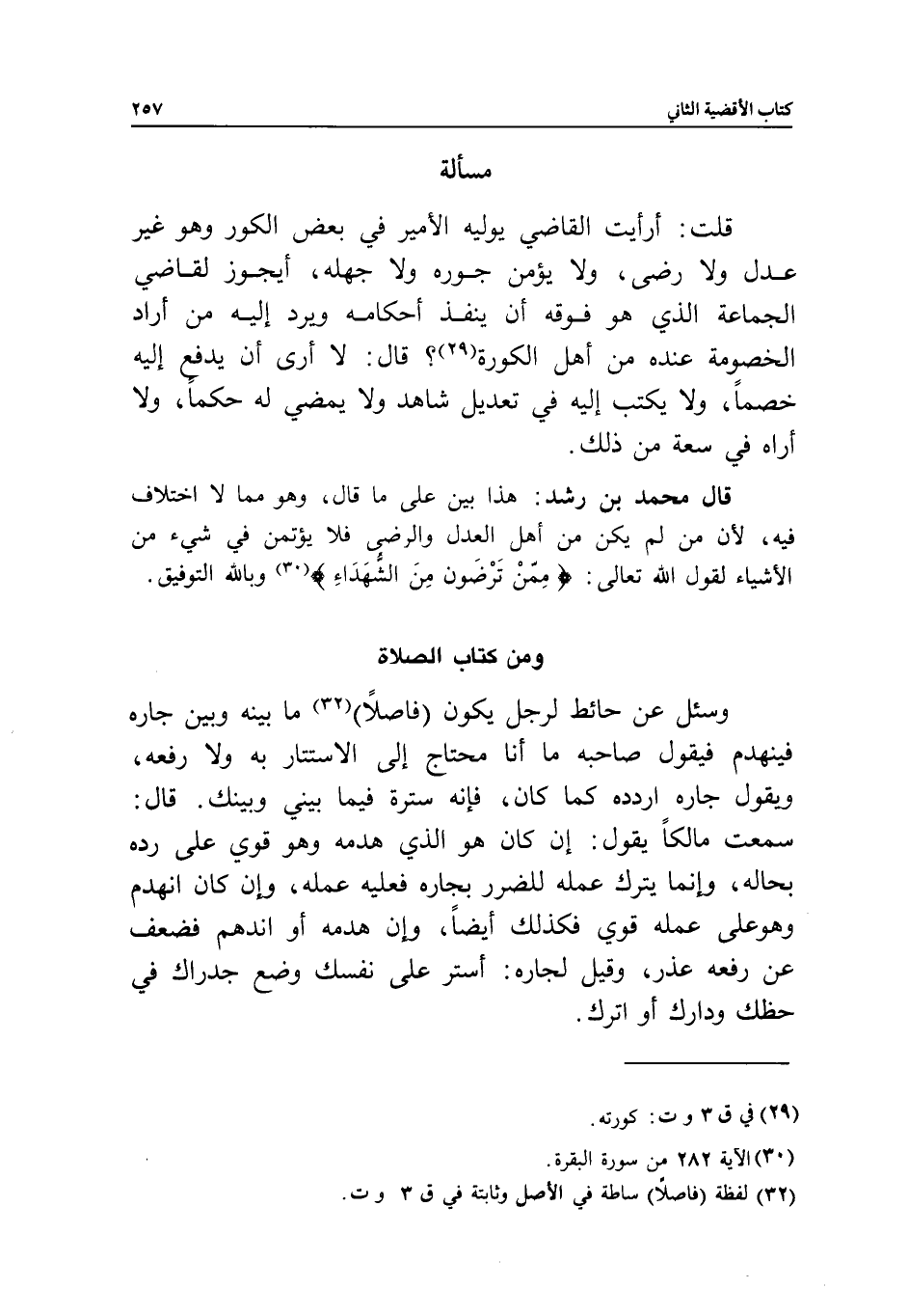 مسألة قلت: أرأيت القاضي يوليه الأمير في بعض الكور، وهو غير عدل ولا رضا، ولا يؤمن جَوْره ولا جهله، أيجوز لقاضي الجماعة الذي هو فوقه أن ينفذ أحكامه، ويرد إليه من أراد الخصومة عنده من أهل الكورة؟ قال: لا أرى أن يدفع إليه خصما، ولا يكتب إليه في تعديل شاهد، ولا يمضي له حكما، ولا أراه في سعة من ذلك.