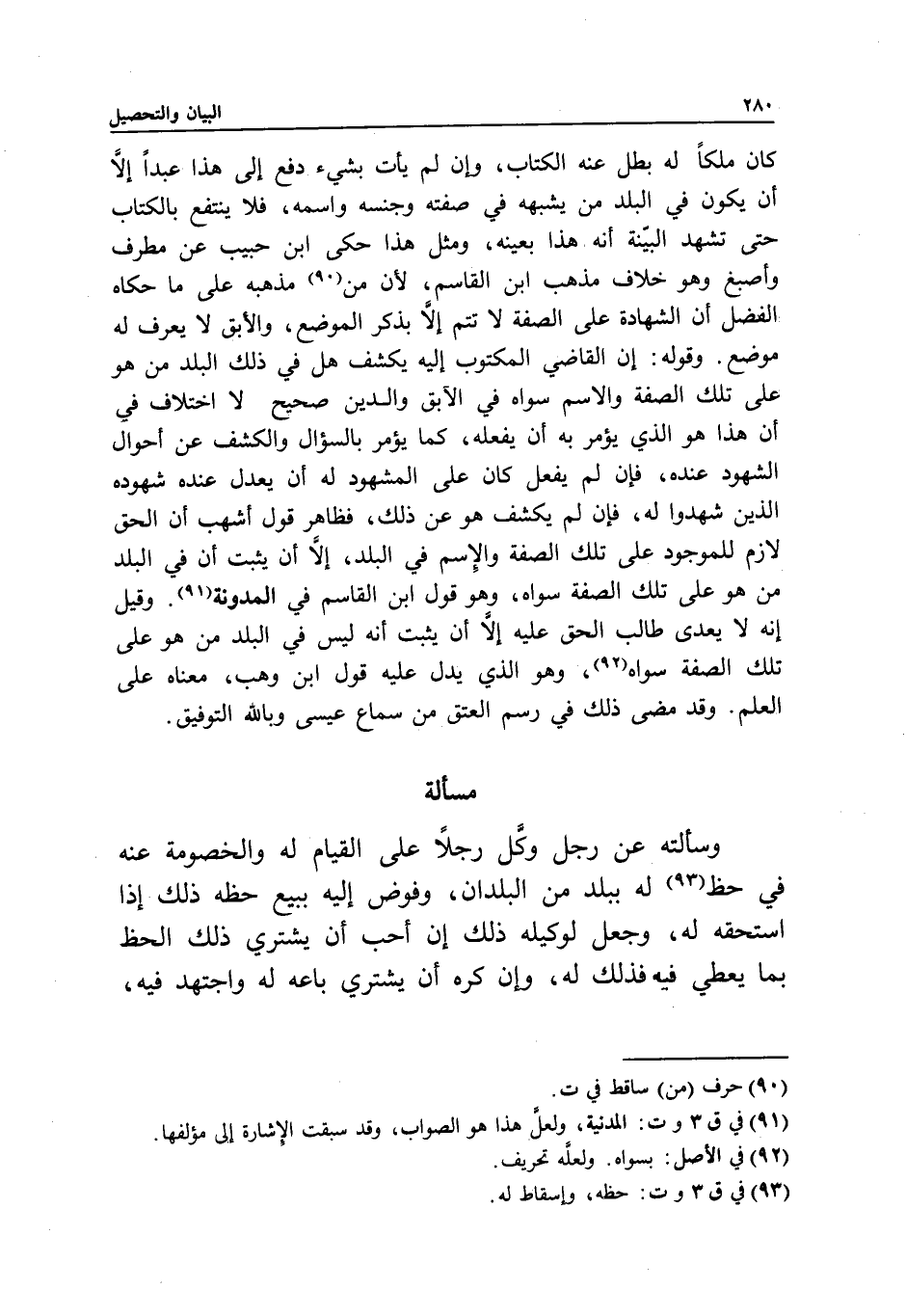 وقوله: إن القاضي المكتوب إليه يكشف هل في ذلك البلد من هو على تلك الصفة والاسم سواه في الآبق والدين؛ صحيح لا اختلاف في أن هذا هو الذي يؤمر به أن يفعله، كما يؤمر بالسؤال والكشف عن أحوال الشهود عنده، فإن لم يفعل كان على المشهود له أن يعدل عنده شهوده الذين شهدوا له، فإن لم يكشف هو عن ذلك، فظاهر قول أشهب أن الحق لازم للموجود على تلك الصفة والاسم في البلد، إلا أن يثبت أن في البلد من هو على تلك الصفة سواه، وهو قول ابن القاسم في المدونة. وقيل: إنه لا يعدى طالب الحق عليه، إلا أن يثبت أنه ليس في البلد من هو على تلك الصفة سواه، وهو الذي يدل عليه قول ابن وهب، معناه على العلم. وقد مضى ذلك في رسم العتق، من سماع عيسى، وبالله التوفيق.
