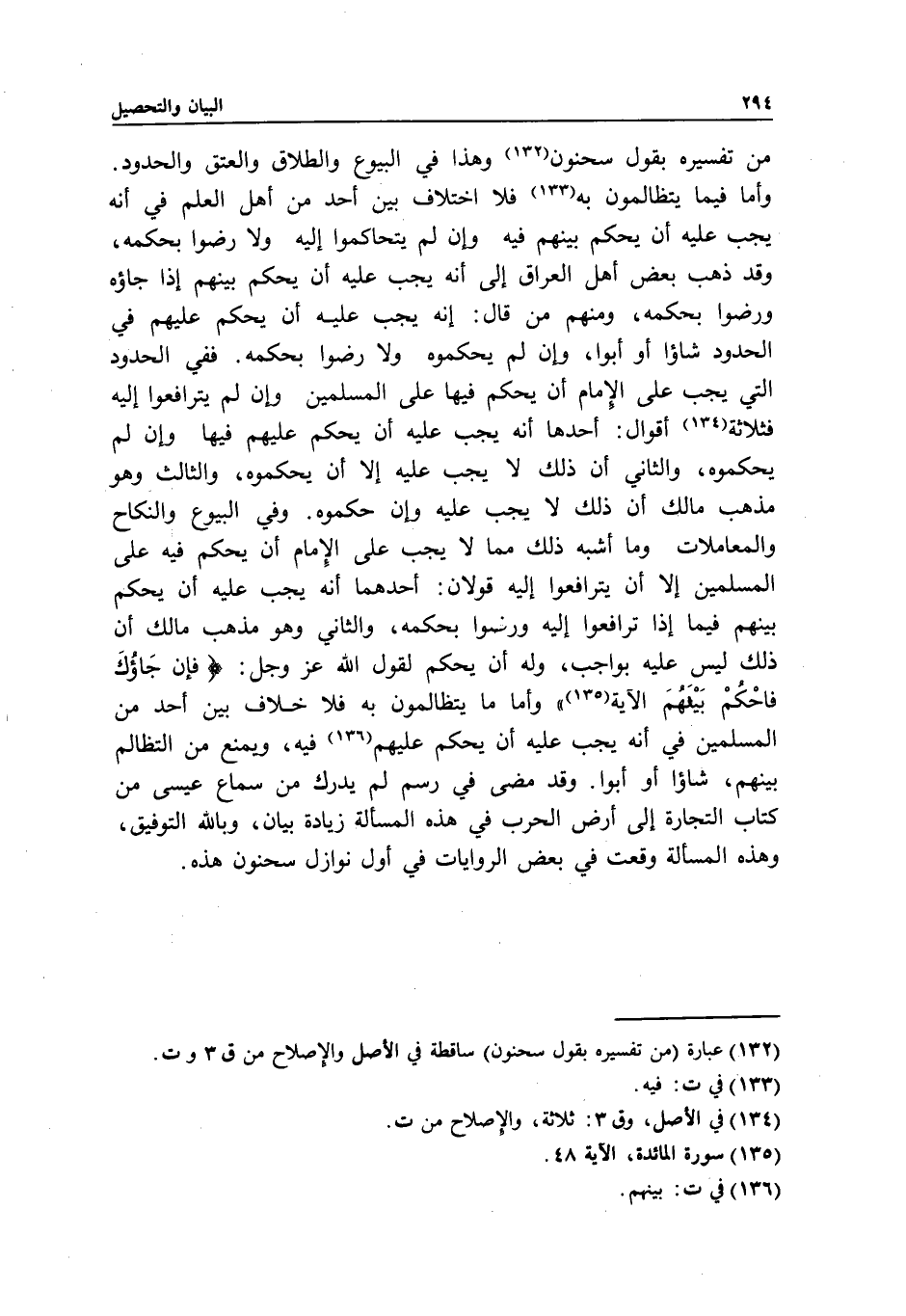 من تفسيره بقول سحنون، وهذا في البيوع والطلاق والعتق والحدود.