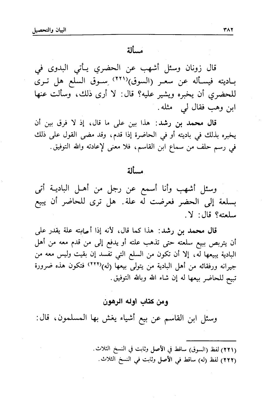 مسألة قال زونان: وسئل أشهب عن الحضري يأتي البدوي في باديته، فيسأله عن سعر السوق - سوق السلع - هل ترى للحضري أن يخبره ويشير عليه؟ قال: لا أرى ذلك، وسألت عنها ابن وهب فقال لي مثله.