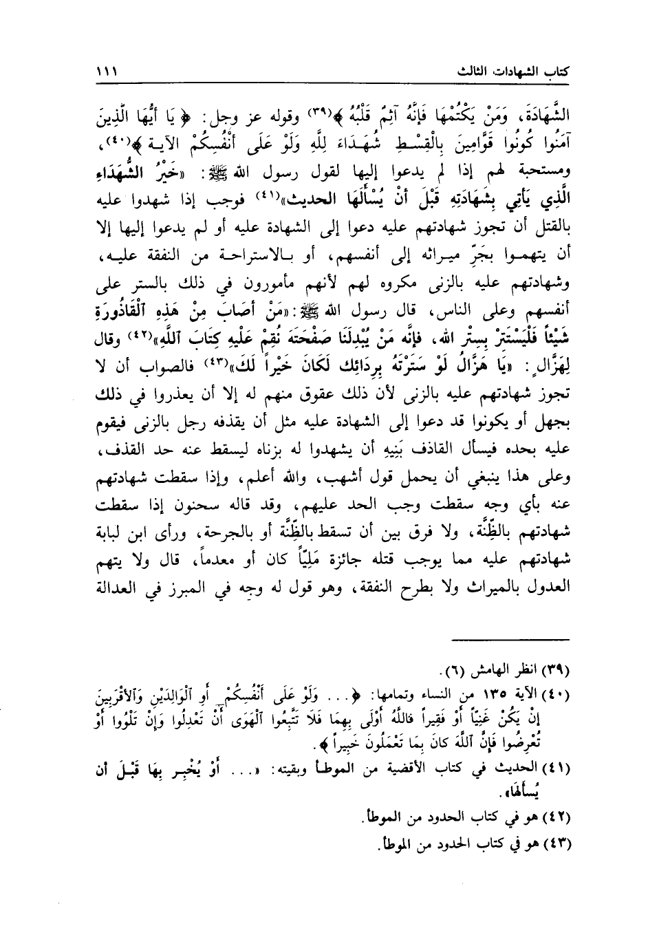 {وَلا تَكْتُمُوا الشَّهَادَةَ وَمَنْ يَكْتُمْهَا فَإِنَّهُ آثِمٌ قَلْبُهُ} [البقرة: 283] وقوله عز وجل: {يَا أَيُّهَا الَّذِينَ آمَنُوا كُونُوا قَوَّامِينَ بِالْقِسْطِ شُهَدَاءَ لِلَّهِ وَلَوْ عَلَى أَنْفُسِكُمْ} [النساء: 135] الآية، ومستحبة لهم إذا لم يدعوا إليها لقول رسول الله - صَلَّى اللَّهُ عَلَيْهِ وَسَلَّمَ -: «خير الشهداء الذي يأتي بشهادته قبل أن يسألها الحديث» فوجب إذا شهدوا عليه بالقتل أن تجوز شهادتهم عليه دعوا إلى الشهادة عليه أو لم يدعوا إليها إلا أن يتهموا بجر ميراثه إلى أنفسهم، أو بالاستراحة من النفقة عليه، وشهادتهم عليه بالزنى مكروه لهم؛ لأنهم مأمورون في ذلك بالستر على أنفسهم وعلى الناس، قال رسول الله - صَلَّى اللَّهُ عَلَيْهِ وَسَلَّمَ -: «من أصاب من هذه القاذورات شيئا فليستتر بستر الله، فإنه من يبدلنا صفحته نقم عليه كتاب الله» وقال لهزال: «يا هزال لو سترته بردائك لكان خيرا لك» فالصواب أن لا تجوز شهادتهم عليه بالزنى؛ لأن ذلك عقوق منهم له إلا أن يعذروا في ذلك بجهل أو يكونوا قد دعوا إلى الشهادة عليه مثل أن يقذفه رجل بالزنى فيقوم عليه بحده فيسأل القاذف بنيه أن يشهدوا له بزناه ليسقط عنه حد القذف، وعلى هذا ينبغي أن يحمل قول أشهب، والله أعلم، وإذا سقطت شهادتهم عنه بأي وجه سقطت وجب الحد عليهم، وقد قاله سحنون إذا سقطت شهادتهم بالظنة، ولا فرق بين أن تسقط بالظنة أو بالجرحة، ورأى ابن لبابة شهادتهم عليه مما يوجب قتله جائزة مليا كان أو معدما، قال: ولا يتهم العدول بالميراث ولا بطرح النفقة، وهو قول له وجه في المبرز في العدالة