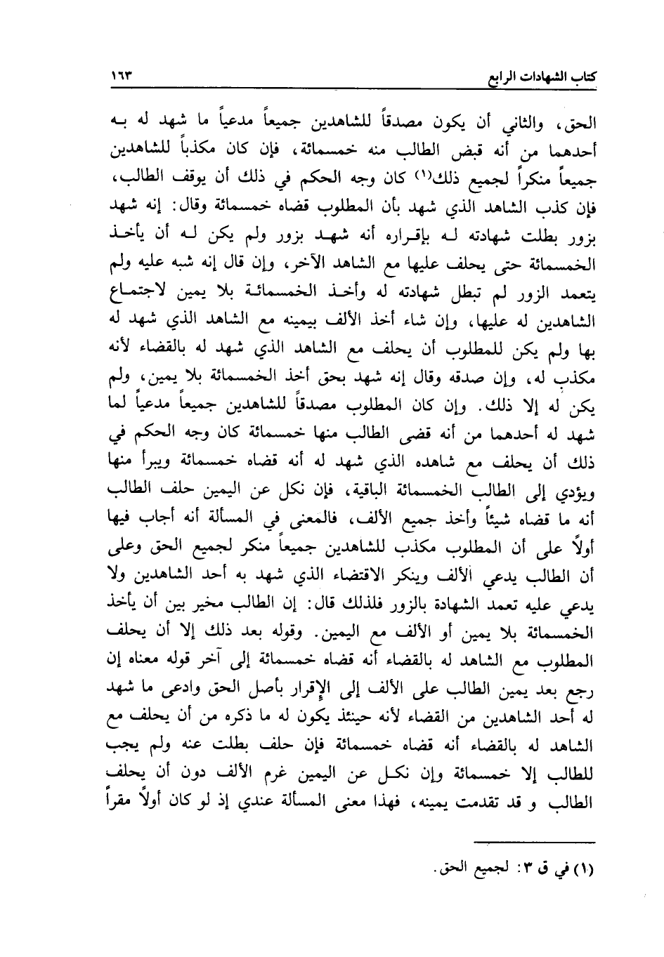الحق. والثاني: أن يكون مصدقا للشاهدين جميعا، مدعيا ما شهد له به أحدهما، من أنه قبض الطالب منه خمسمائة، فإن كان مكذبا للشاهدين جميعا، منكرا لجميع ذلك، كان وجه الحكم في ذلك أن يوقف الطالب، فإن كذب الشاهد الذي شهد بأن المطلوب قضاه خمسمائة، وقال: إنه شهد بزور، بطلت شهادته له بإقراره أنه شهد بزور، ولم يكن له أن يأخذ الخمسمائة حتى يحلف عليها مع الشاهد الآخر، وإن قال: إنه شبه عليه، ولم يتعمد الزور لم تبطل شهادته له، وأخذ الخمسمائة بلا يمين؛ لاجتماع الشاهدين له عليها، وإن شاء أخذ الألف بيمينه مع الشاهد الذي شهد له بها، ولم يكن للمطلوب أن يحلف مع الشاهد الذي شهد له بالقضاء؛ لأنه مكذب له، وإن صدقه وقال: إنه شهد بحق، أخذ الخمسمائة بلا يمين، ولم يكن له إلا ذلك.