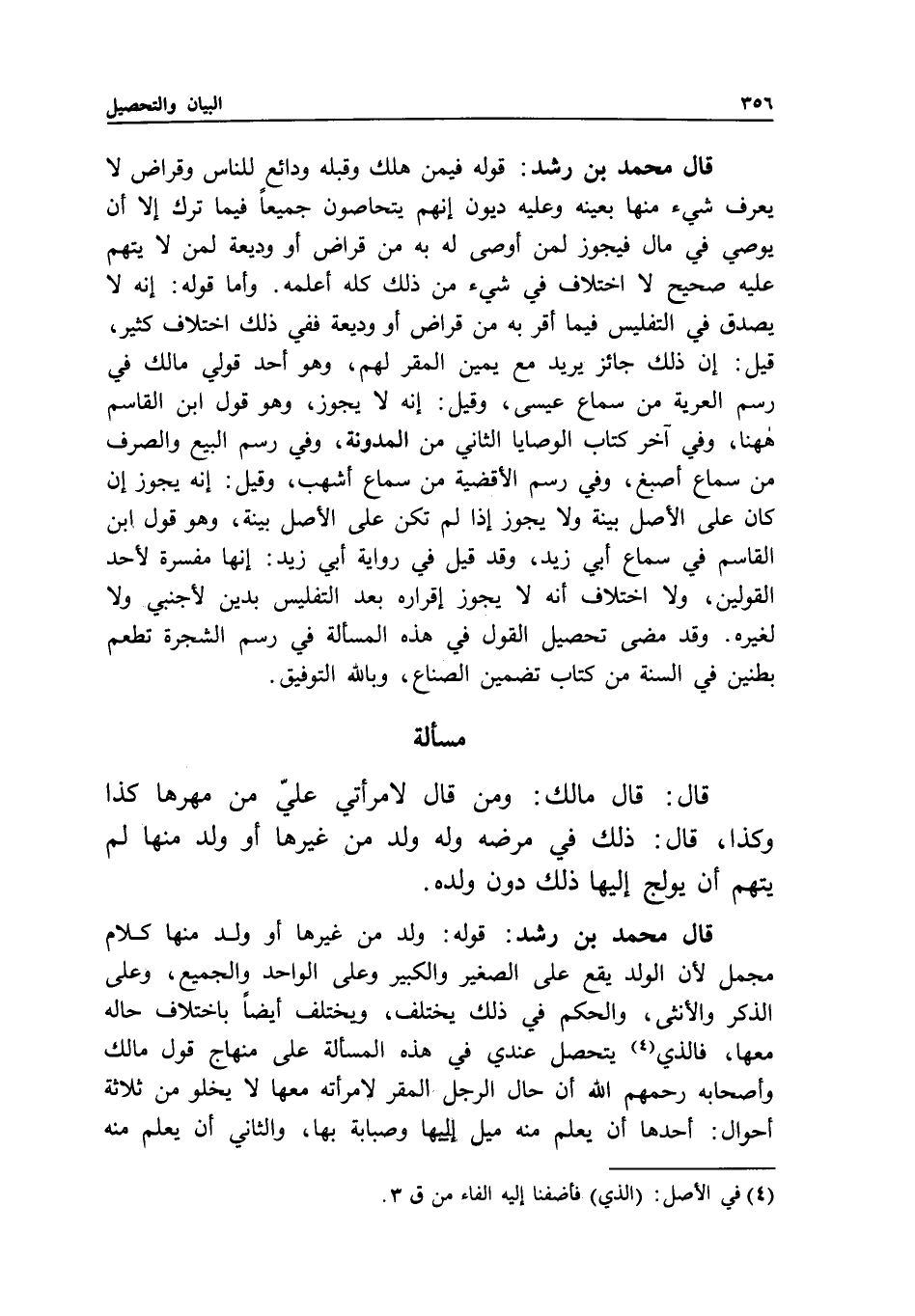مسألة قال: قال مالك: ومن قال: لامرأتي علي من مهرها كذا وكذا، قال: ذلك في مرضه وله ولد من غيرها أو ولد منها لم يتهم أن يولج إليها ذلك دون ولده.