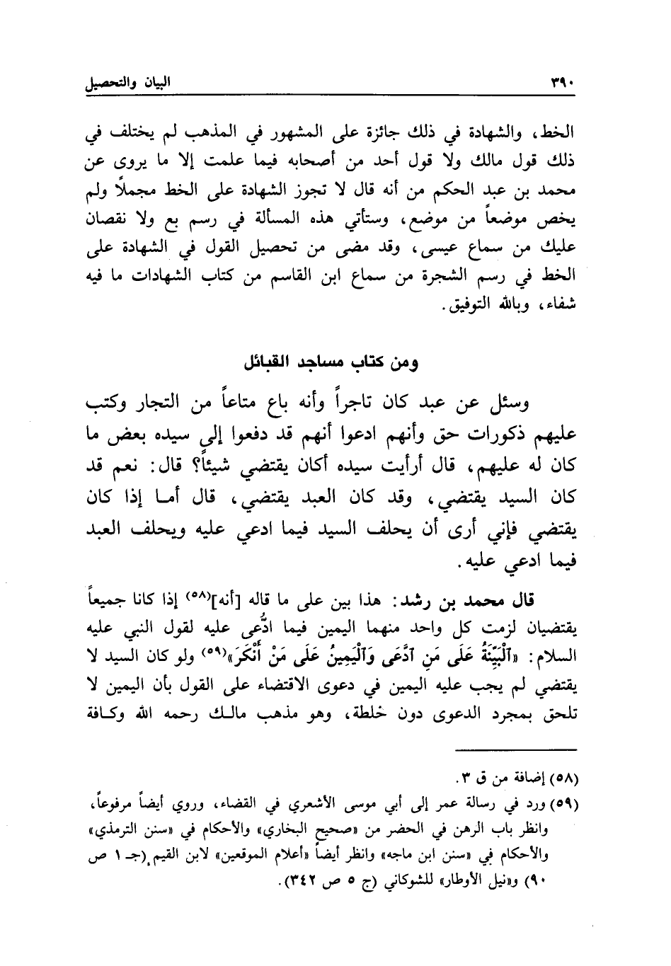الخط، والشهادة في ذلك جائزة على المشهور في المذهب لم يختلف في ذلك قول مالك ولا قول أحد من أصحابه فيما علمت إلا ما يروى عن محمد بن عبد الحكم من أنه قال: لا تجوز الشهادة على الخط مجملا ولم يخص موضعا من موضع، وستأتي هذه المسألة في رسم بع ولا نقصان عليك من سماع عيسى، وقد مضى من تحصيل القول في الشهادة على الخط في رسم الشجرة من سماع ابن القاسم من كتاب الشهادات ما فيه شفاء، وبالله التوفيق.