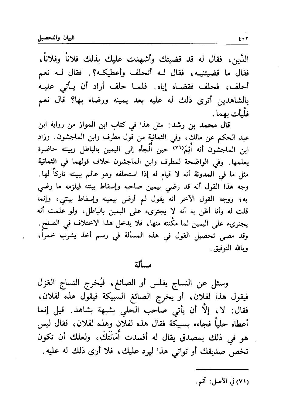 قال محمد بن رشد: مثل هذا في كتاب ابن المواز من رواية ابن عبد الحكم عن مالك، وفي الثمانية من قول مطرف وابن الماجشون.