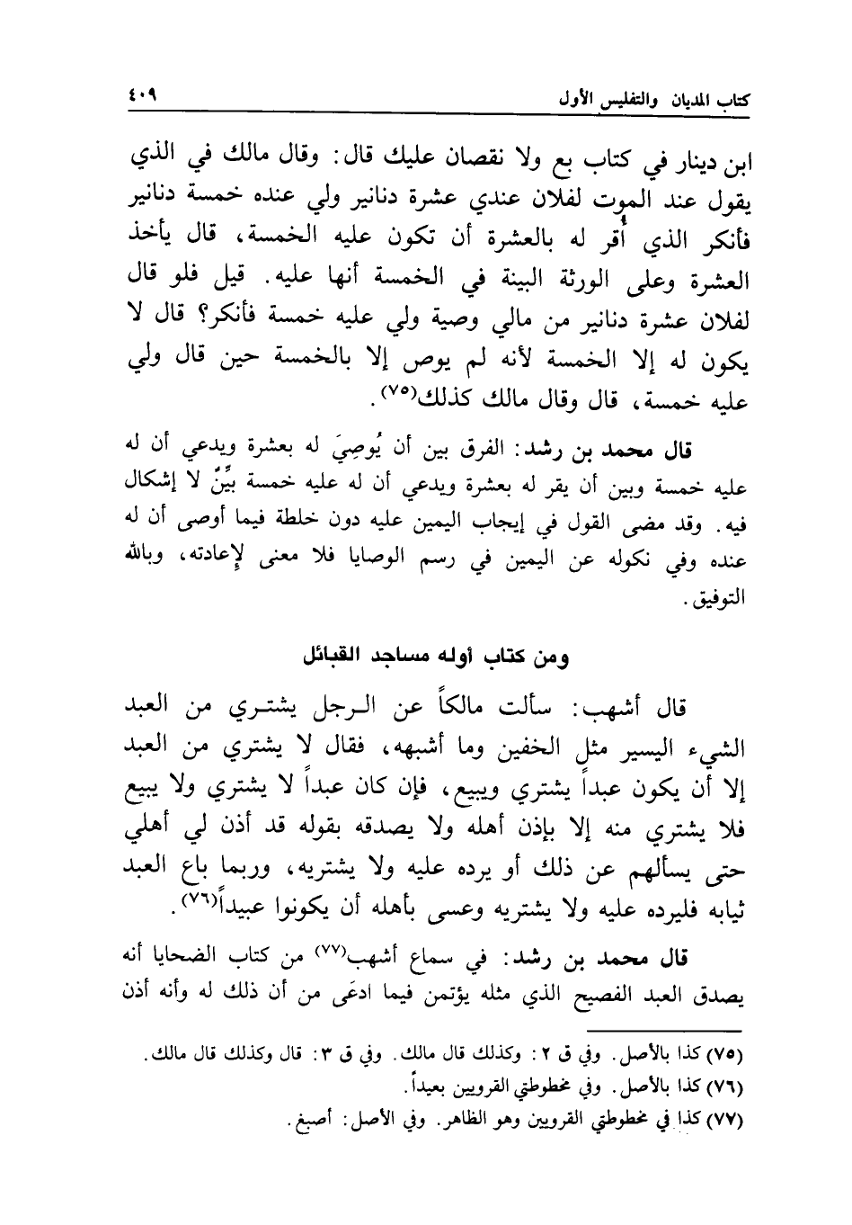 ومن كتاب أوله مساجد القبائل قال أشهب: سألت مالكا: عن الرجل يشتري من العبد الشيء اليسير مثل الخفين وما أشبهه، فقال: لا يشتري من العبد إلا أن يكون عبدا يشتري ويبيع، فإن كان عبدا لا يشتري ولا يبيع فلا يشتري منه إلا بإذن أهله ولا يصدقه بقوله قد أذن لي أهلي حتى يسألهم عن ذلك أو يرده عليه ولا يشتريه، وربما باع العبد ثيابه فليرده عليه ولا يشتريه وعسى بأهله أن يكونوا عبيدا.
