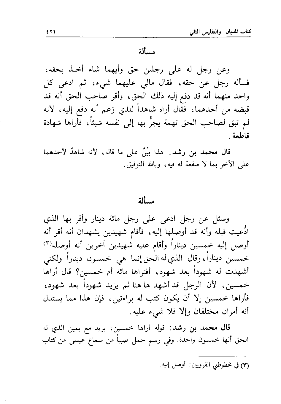 قال محمد بن رشد: قوله أراها خمسين، يريد مع يمين الذي له الحق أنها خمسون واحدة.