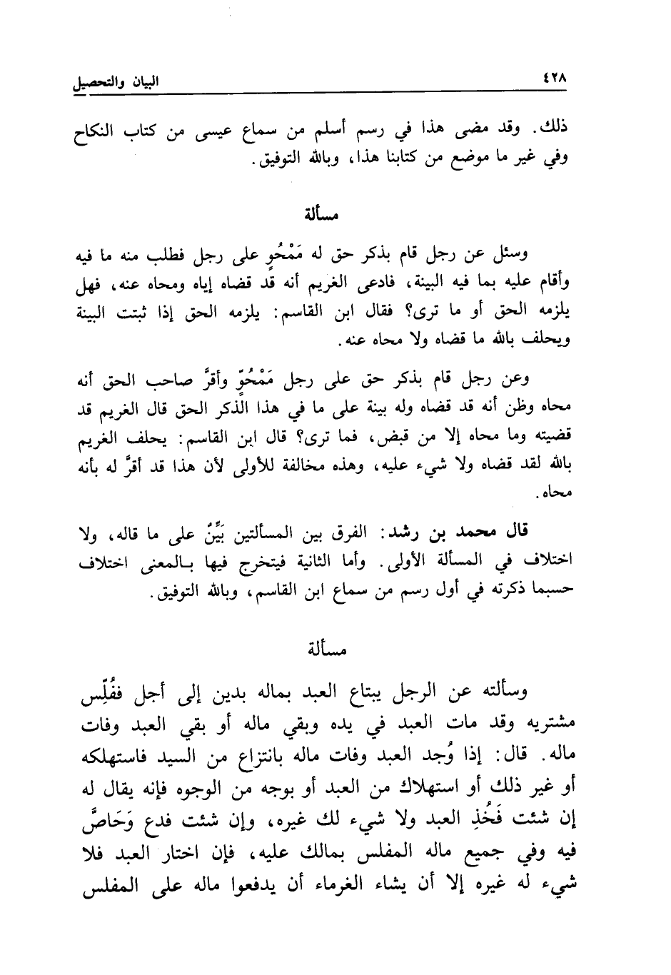 ذلك. وقد مضى هذا في رسم أسلم من سماع عيسى من كتاب النكاح وفي غير ما موضع من كتابنا هذا، وبالله التوفيق.