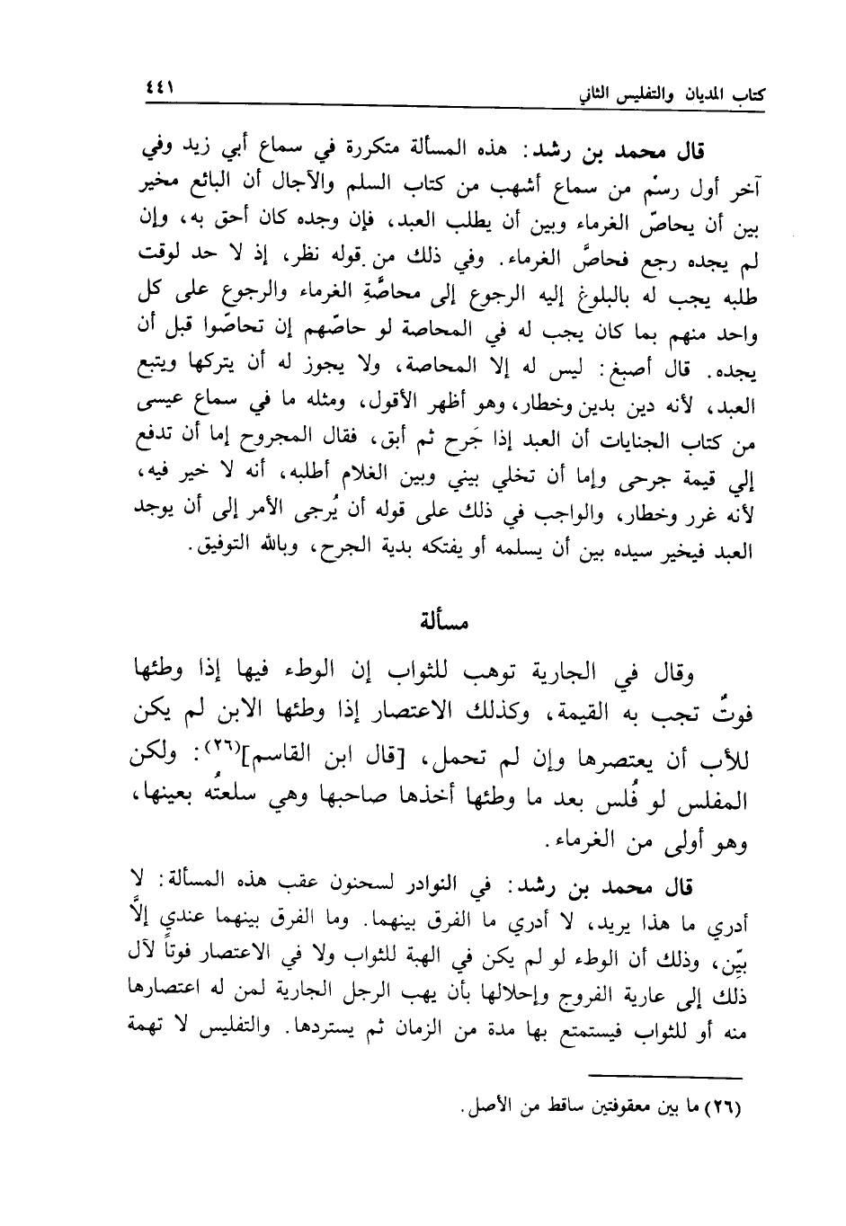 قال محمد بن رشد: في النوادر لسحنون عقب هذه المسألة: لا أدري ما هذا يريد، لا أدري ما الفرق بينهما.