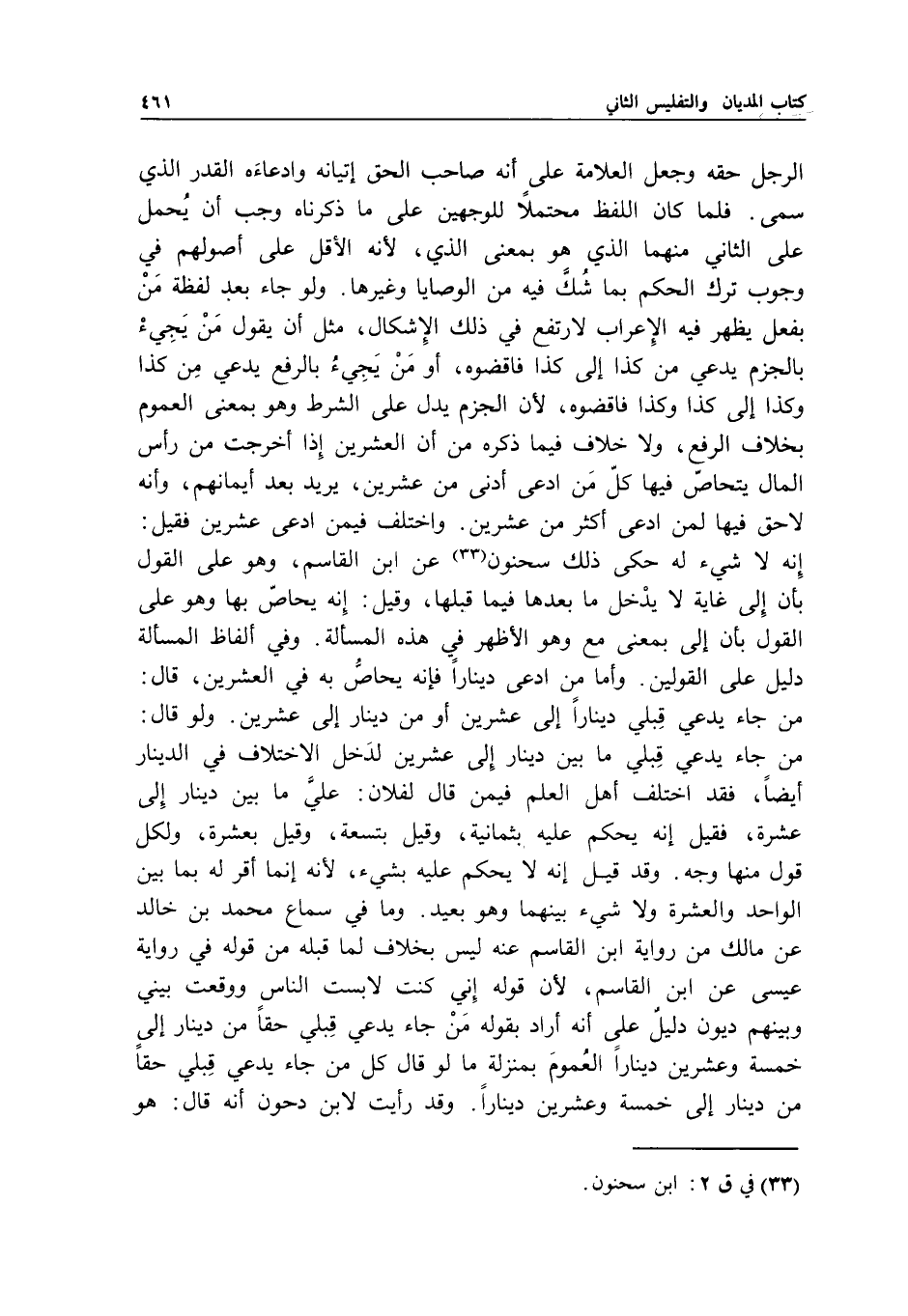 وأما من ادعى دينارا فإنه يحاص به في العشرين، قال: من جاء يدعي قبلي دينارا إلى عشرين أو من دينار إلى عشرين. ولو قال: من جاء يدعي قبلي ما بين دينار إلى عشرين لدخل الاختلاف في الدينار أيضا، فقد اختلف أهل العلم فيمن قال لفلان: علي ما بين دينار إلى عشرة، فقيل: إنه يحكم عليه بثمانية، وقيل: بتسعة، وقيل: بعشرة، ولكل قول منها وجه.
