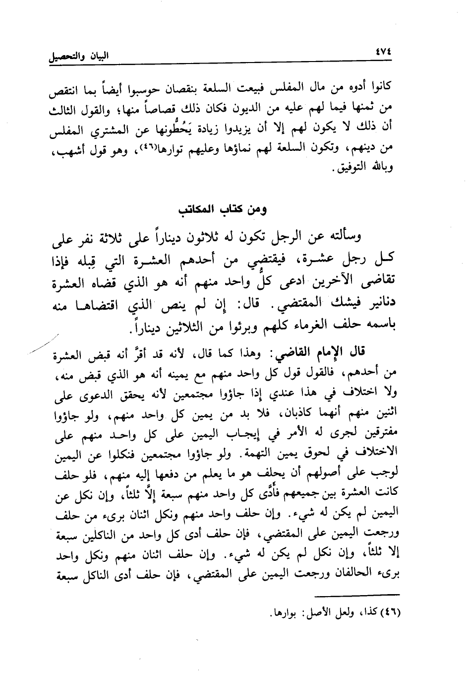 قال الإمام القاضي: وهذا كما قال؛ لأنه قد أقر أنه قبض العشرة من أحدهم، فالقول قول كل واحد منهم مع يمينه أنه هو الذي قبض منه، ولا اختلاف في هذا عندي إذا جاءوا مجتمعين؛ لأنه يحقق الدعوى على اثنين منهم أنهما كاذبان، فلا بد من يمين كل واحد منهم، ولو جاءوا مفترقين لجرى له الأمر في إيجاب اليمين على كل واحد منهم على الاختلاف في لحوق يمين التهمة.