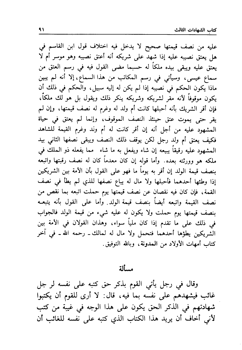 عليه من نصف قيمتها صحيح لا يدخل فيه اختلاف قول ابن القاسم في هل يعتق نصيبه عليه إذا شهد على شريكه أنه أعتق نصيبه وهو موسر أم لا يعتق عليه ويبقى بيده ملكا له حسبما مضى القول فيه في رسم العتق من سماع عيسى، وسيأتي في رسم المكاتب من هذا السماع، إلا أنه لم يبين ماذا يكون الحكم في نصيبه إذا لم يكن له إليه سبيل، والحكم في ذلك أن يكون موقوفا؛ لأنه مقر لشريكه وشريكه ينكر ذلك، ويقول: بل هو لك ملكا، فإن أقر الشريك بأنه أحبلها كانت أم ولد له وغرم له نصف قيمتها، وإن لم يقر حتى يموت عتق حينئذ النصف الموقوف، وإنما لم يعتق في حياة المشهود عليه من أجل أنه إن أقر كانت له أم ولد وغرم القيمة للشاهد فكيف يعتق أم ولد رجل لكن يوقف ذلك النصف ويبقى نصفها الثاني بيد المشهود عليه رقيقا يبيعه إن شاء ويفعل به ما شاء مما يفعله ذو الملك في ملكه هو وورثته بعده.