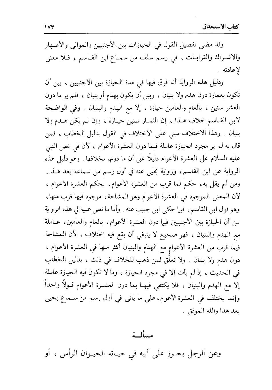 وقد مضى تفصيل القول في الحيازات بين الأجنبيين والموالي والأصهار والأشراك والقرابات، في رسم سلف من سماع ابن القاسم، فلا معنى لإعادته.