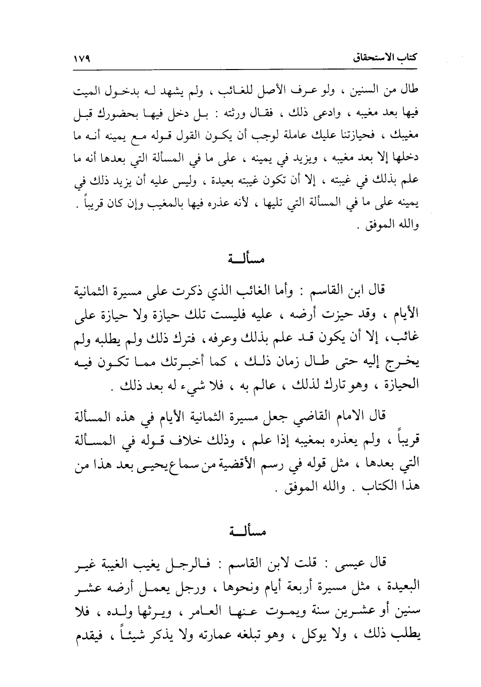مسألة قال عيسى: قلت لابن القاسم: فالرجل يغيب الغيبة غير البعيدة، مثل مسيرة أربعة أيام ونحوها، ورجل يعمل أرضه عشر سنين أو عشرين سنة، ويموت عنها العامر، ويرثها ولده، فلا يطلق ذلك، ولا يوكل، وهو تبلغه عمارته، ولا يذكر شيئا، فيقدم