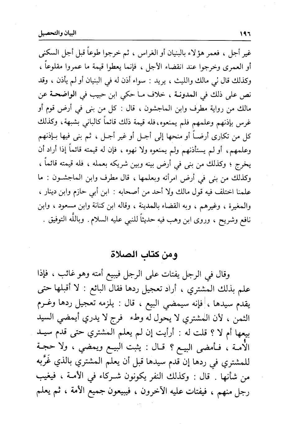 غير أجل، فعمر هؤلاء بالبنيان أو الغراس، ثم خرجوا طوعا قبل أجل السكنى أو العمرى، وخرجوا عند انقضاء الأجل، فإنما يعطوا قيمة ما عمروا مقلوعا، وكذلك قال لي مالك والليث، يريد: سواء أذن له في البنيان أو لم يأذن، وقد نص على ذلك في المدونة، خلاف ما حكى ابن حبيب في الواضحة عن مالك من رواية مطرف وابن الماجشون، قال: كل من بنى في أرض قوم أو غرس بإذنهم وعلمهم، فلم يمنعوه، فله قيمة ذلك قائما كالباني بشبهة، وكذلك كل من تكارى أرضا أو منحها إلى أجل أو غير أجل، ثم بنى فيها بإذنهم وعلمهم، أو لم يستأذنهم ولم يمنعوه ولا نهوه، فإن له قيمته قائما إذا أراد أن يخرج؟ وكذلك من بنى في أرض بينه وبين شريكه بعمله، فله قيمته قائما، وكذلك من بنى في أرض امرأته وبعلمها، قال مطرف وابن الماجشون: ما علمنا اختلف فيه قول مالك ولا أحد من أصحابه؛ ابن أبي حازم، وابن دينار، والمغيرة، وغيرهم، وبه القضاء بالمدينة، وقاله ابن كنانة، وابن مسعود، وابن نافع، وشريح، وروى ابن وهب فيه حديثا للنبي - عَلَيْهِ السَّلَامُ -، وبالله التوفيق.