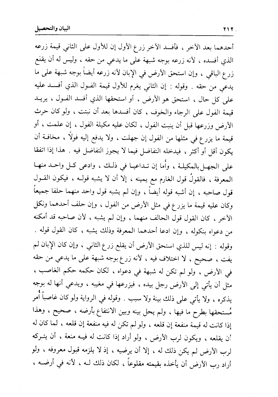 وقوله: إن الثاني يغرم للأول قيمة الفول الذي أفسد عليه على كل حال، استحق هو الأرض، أو استحقها الذي أفسد الفول، يريد قيمة الفول على الرجاء والخوف، كأن أفسدها بعد أن نبتت، ولو كان حرث الأرض وزرعها قبل أن ينبت الفول؛ لكان عليه مكيلة الفول إن علمت، أو قيمة ما يزرع في مثلها من الفول إن جهلت، ولا يدفع إليه فولا، مخافة أن يكون أقل أو أكثر، فيدخله التفاضل فيما لا يجوز التفاضل فيه.
