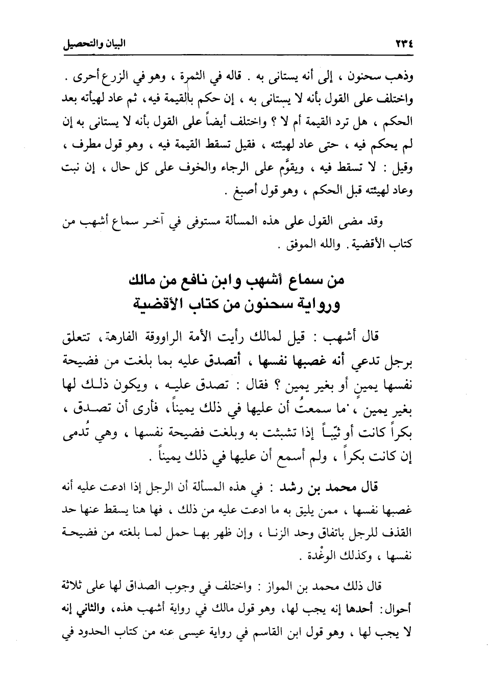 من سماع أشهب وابن نافع من مالك ورواية سحنون من كتاب الأقضية