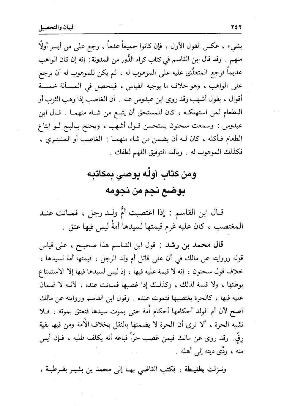 ونزلت بطليطة، فكتب القاضي بها إلى محمد بن بشير بقرطبة،