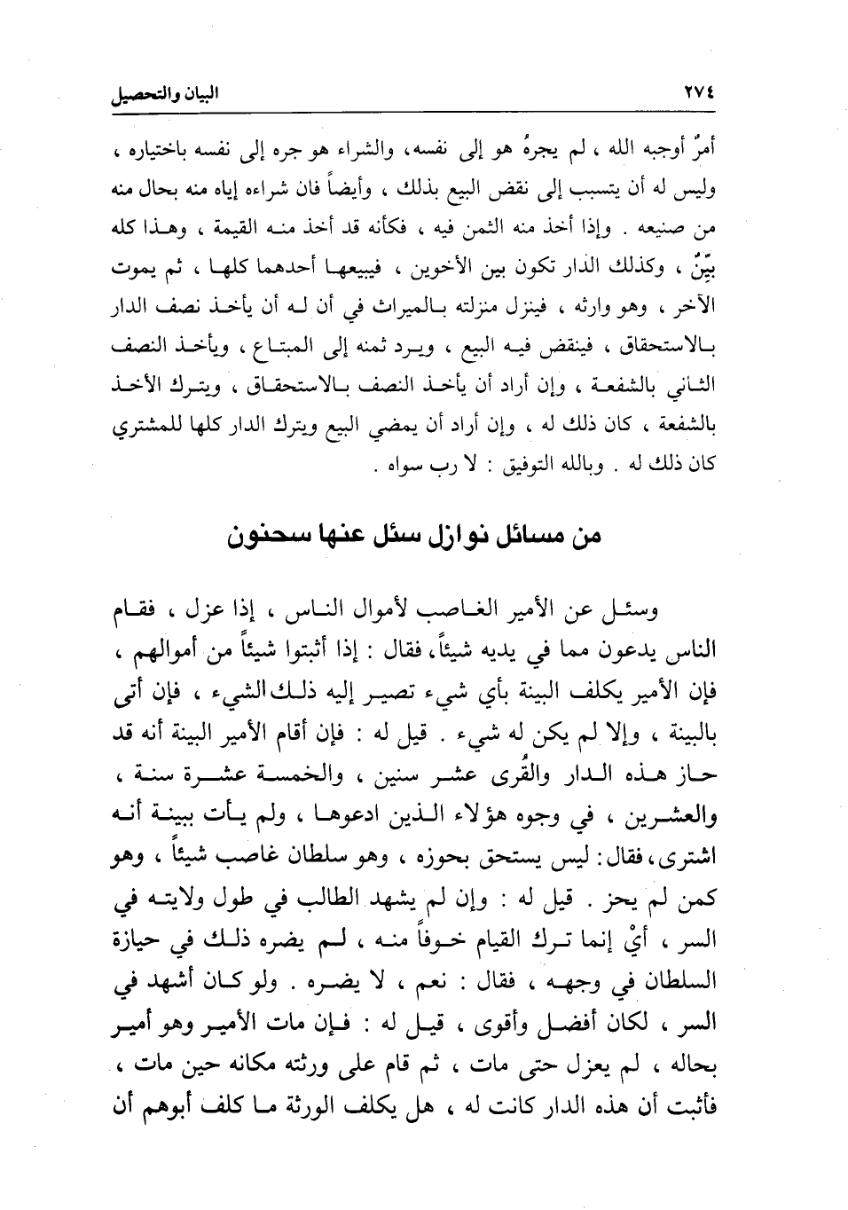 من مسائل نوازل سئل عنها سحنون