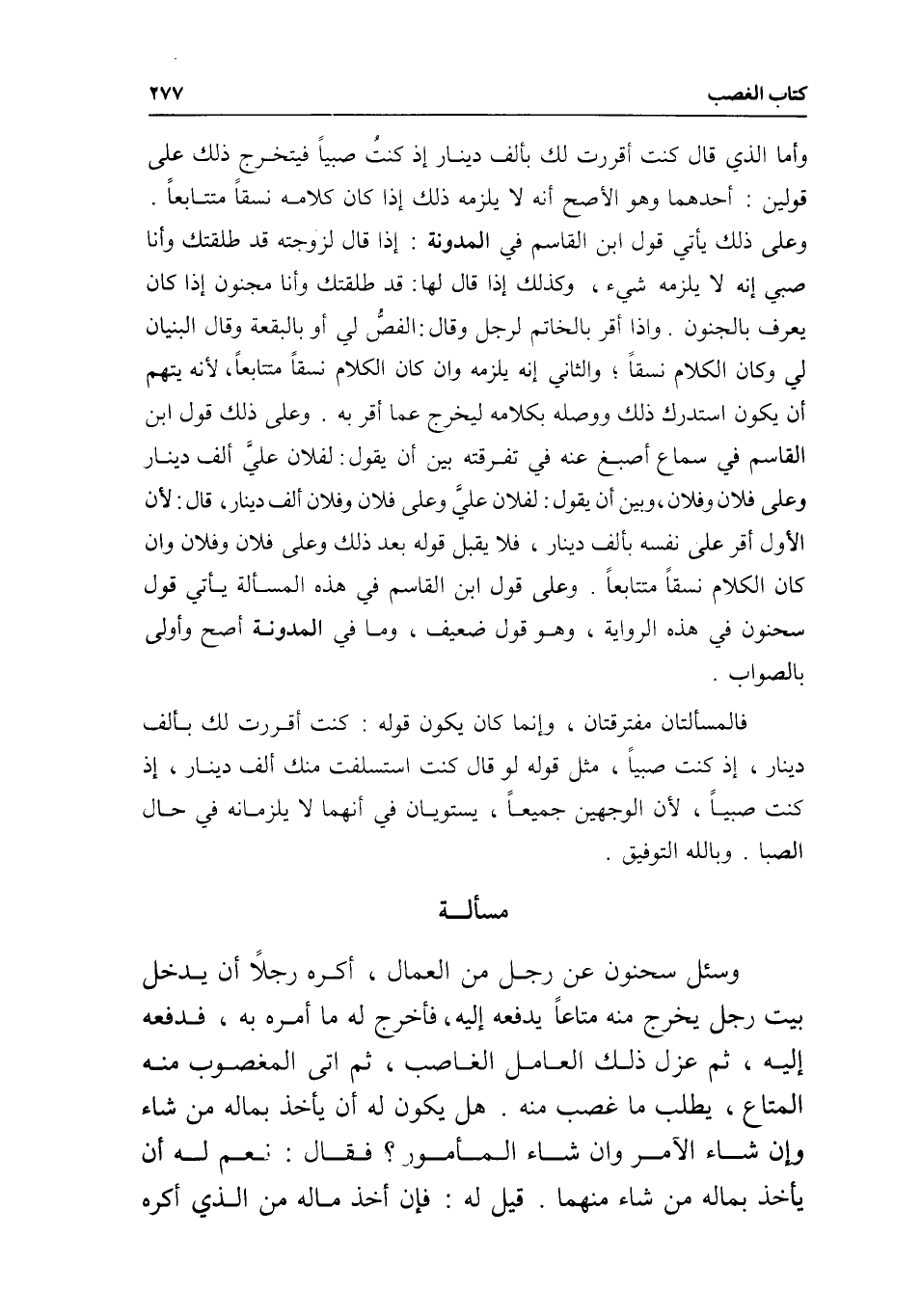 وأما الذي قال: كنت أقررت لك بألف دينار إذ كنت صبيا فيتخرج ذلك على قولين: أحدهما وهو الأصح: أنه لا يلزمه ذلك إذا كان كلامه نسقا متتابعا. وعلى ذلك يأتي قول ابن القاسم في المدونة: إذا قال لزوجته قد طلقتك وأنا صبي إنه لا يلزمه شيء، وكذلك إذا قال لها: قد طلقتك وأنا مجنون إذا كان يعرف بالجنون. وإذا أقر بالخاتم لرجل وقال: الفص لي أو بالبقعة وقال البنيان لي وكان الكلام نسقا؛ والثاني: أنه يلزمه وإن كان الكلام نسقا متتابعا؛ لأنه يتهم أن يكون استدرك ذلك ووصله بكلامه ليخرج عما أقر به. وعلى ذلك قول ابن القاسم في سماع أصبغ عنه في تفرقته بين أن يقول: لفلان علي ألف دينار وعلى فلان وفلان، وبين أن يقول: لفلان علي وعلى فلان وفلان ألف دينار، قال: لأن الأول أقر على نفسه بألف دينار، فلا يقبل قوله بعد ذلك، وعلى فلان وفلان وإن كان الكلام نسقا متتابعا. وعلى قول ابن القاسم في هذه المسألة يأتي قول سحنون في هذه الرواية، وهو قول ضعيف، وما في المدونة أصح وأولى بالصواب.